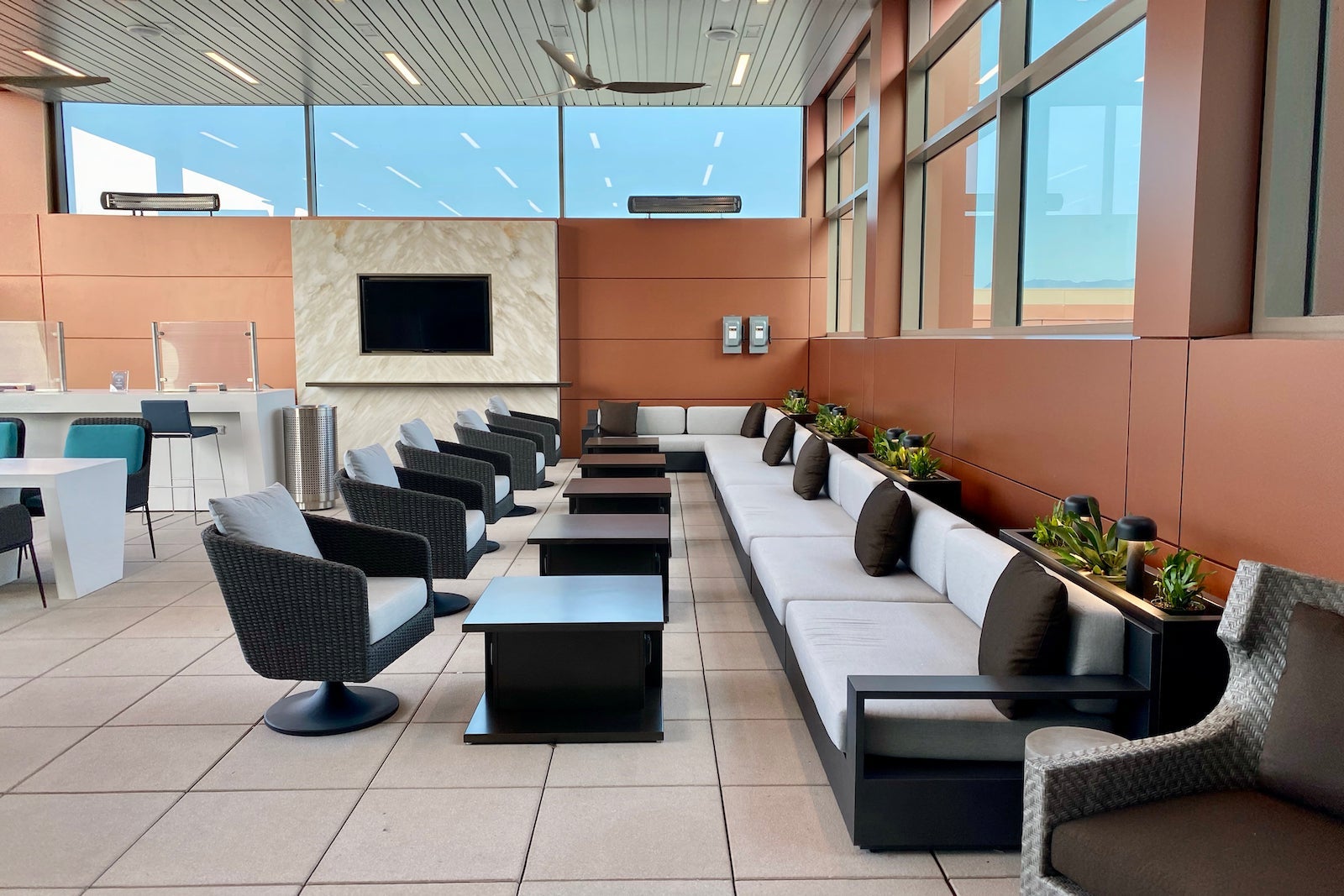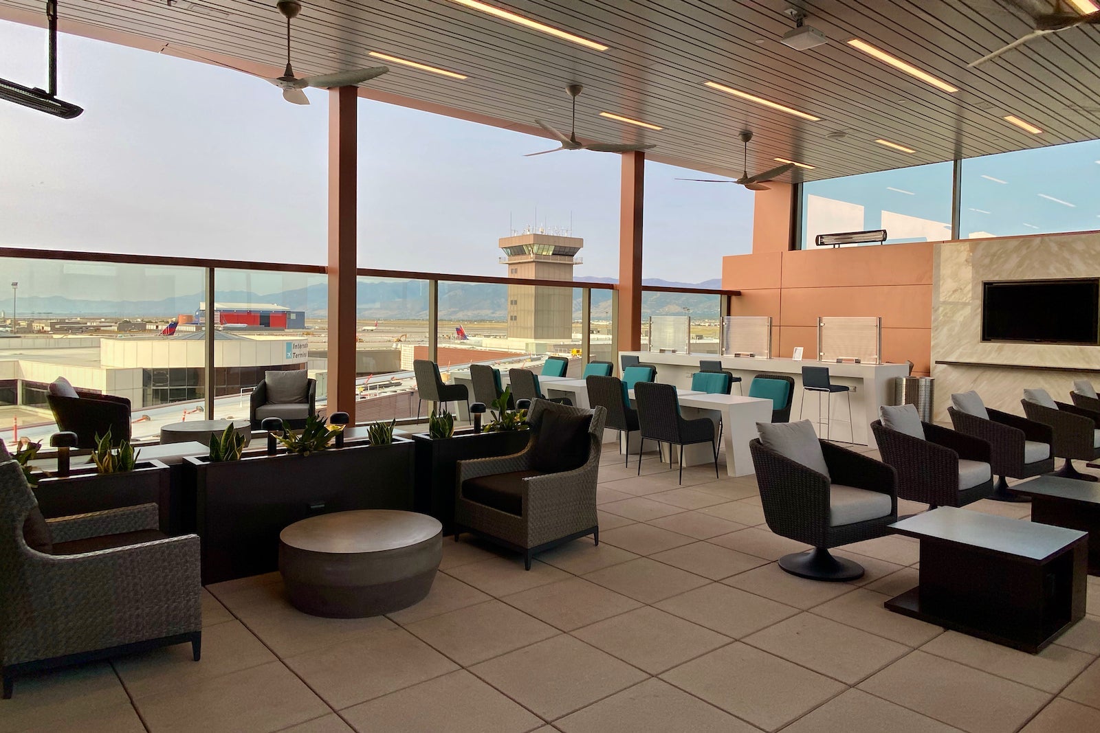 For aviation enthusiasts like me, the hands-down best feature of the lounge is the covered Sky Deck, offering unparalleled views of the airfield and Wasatch mountain range. There's plenty of seating here, and — thanks to fans and heaters — the Sky Deck is where you'll find me sitting year-round.