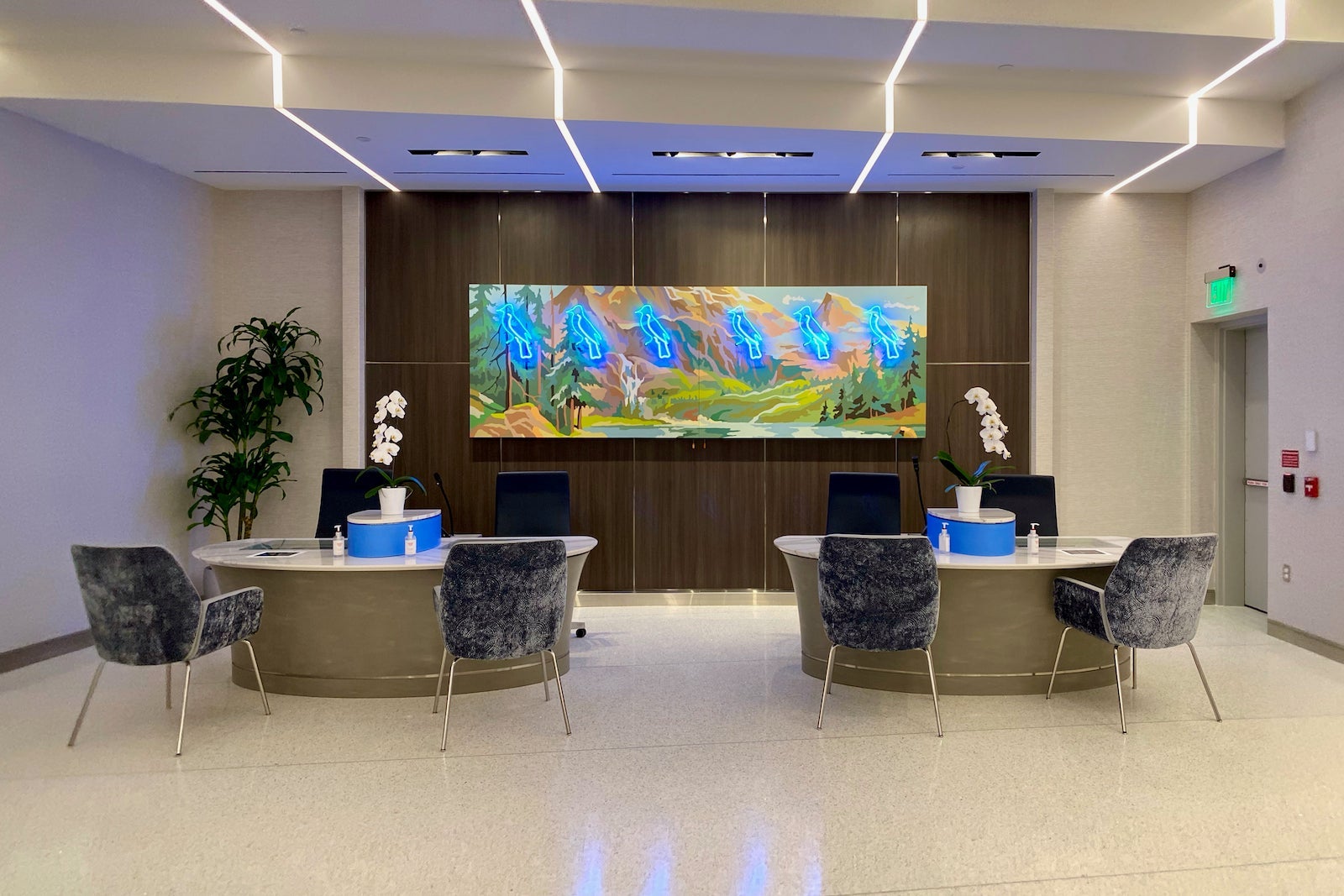 My favorite piece in the lounge is the "Wasatch Range" by Utahn Erik Jensen (the leftmost piece in the below picture.)
