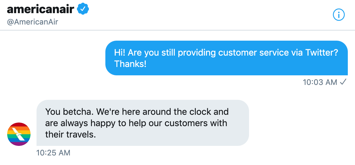 Among the three largest U.S. airlines, the delays appear to be isolated to Delta. American and United offer dedicated chat tools as well, and agents responded in less than five minutes during my tests there. I was able to reach both airlines via Twitter today, as well.