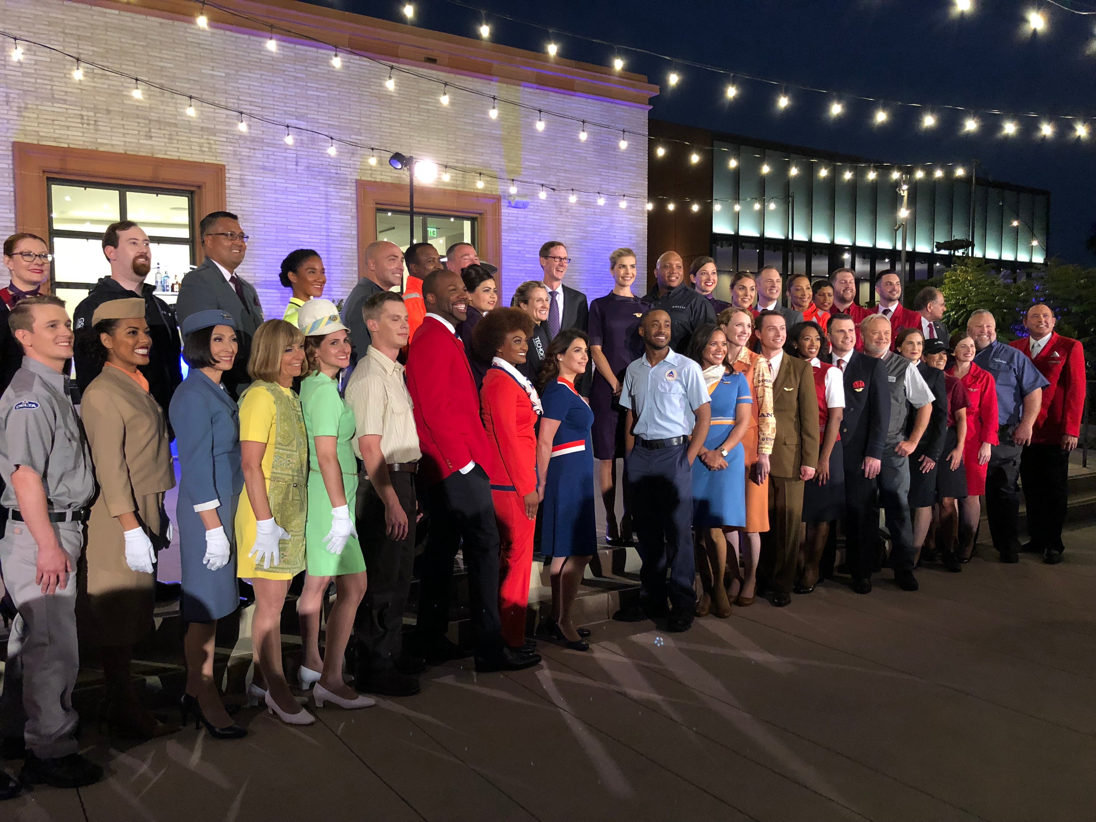 As Tuesday wrapped up in Los Angeles — a day of unveiling that started in Sydney before making its way to Asia, Europe and the US — Delta hosted a final celebration in honor of the uniform launch. There, Delta employees gathered for a final celebration of the launch of the new look for the carrier by modeling (nearly) 90 years of past crew uniforms.