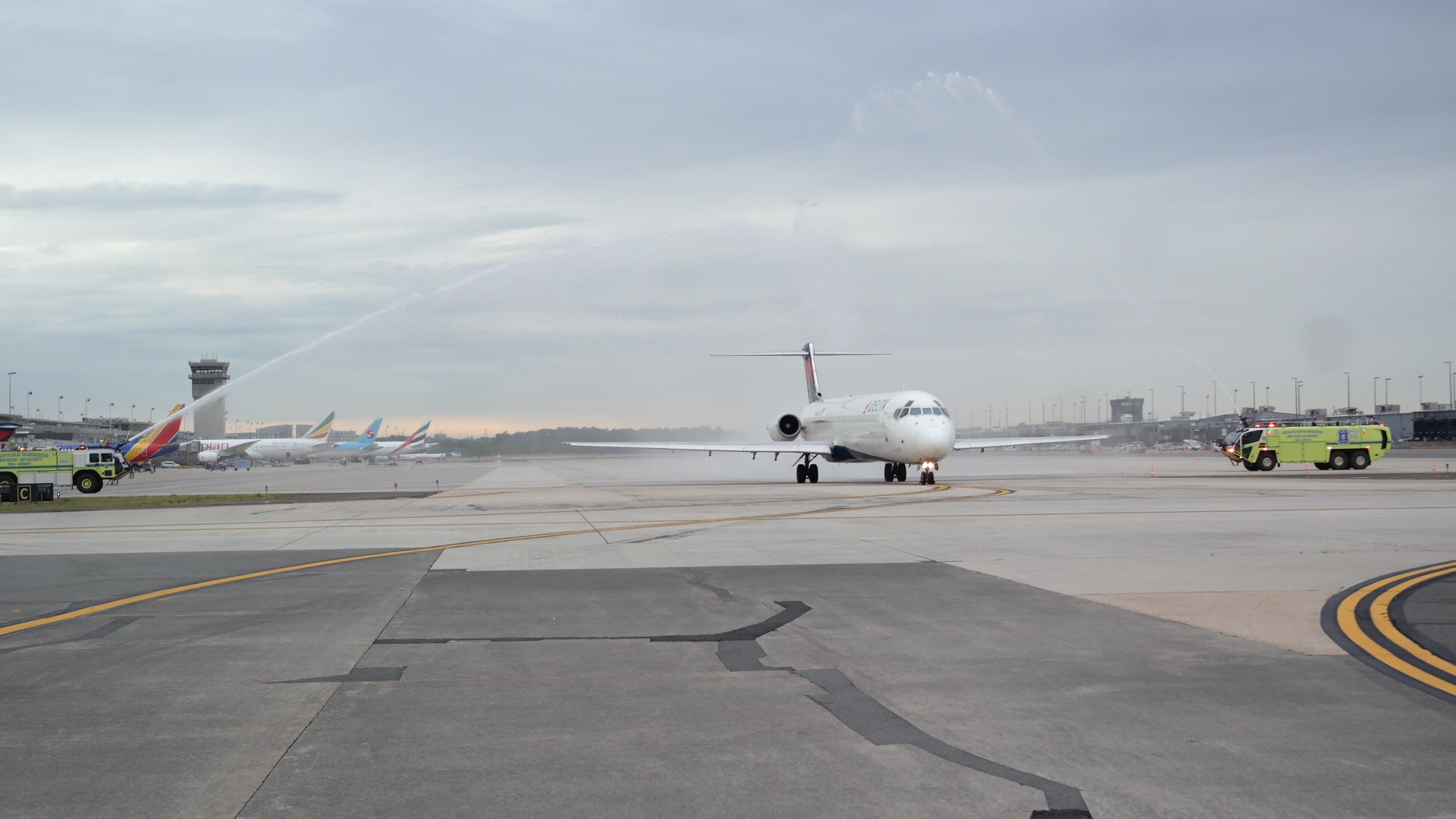 The flight, fittingly DL88, received a water-canon salute after pushing back from the gate at Dulles (IAD) at 8:20 a.m. local time for its scheduled 1-hour, 14-minute flight to Delta's Atlanta (ATL) base. The MD-88, registration N900DE, was one of seven inbound MD-88 flights operating to Atlanta on Tuesday morning. DL88 was the last of those to depart.