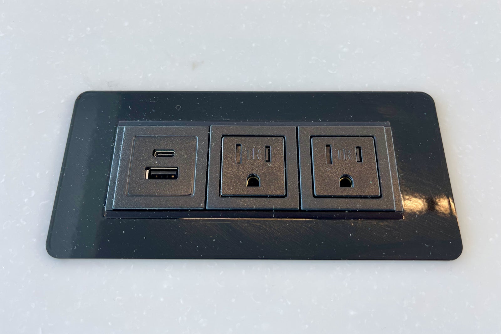 Each seat features a power outlet, and some have USB-A and USB-C charging ports, too.