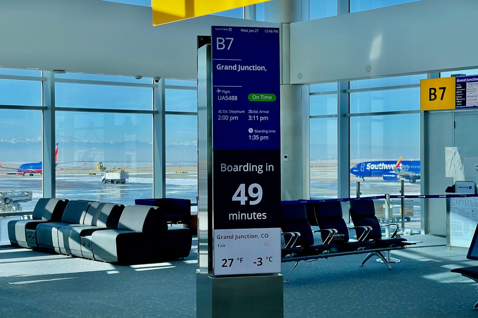 Additionally, each gate has a new vertical screen with improved messaging, flight status information, boarding times and arrival weather.