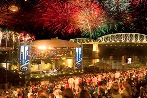 Folks come early to stake out prime spots, so the celebration begins at noon with live music, while the official concert kicks off at 6:45pm, and the fireworks and Symphony concert will begin at 9:30pm. The event is expected to draw over 100,000 visitors.