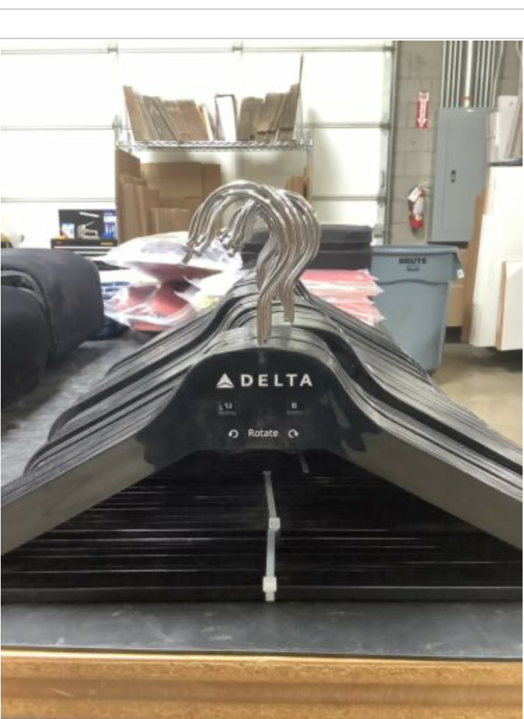 As someone who actually eats off of Delta Air Lines first-class silverware (and also has a set of Northwest silverware), these hangers, up for bid for $25, used for first-class passengers would appeal to me. I'd probably use them to hang up my coats in the hall closet.
