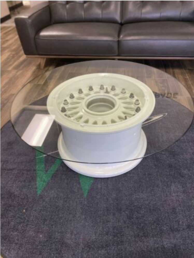 Back when I still had my blog, I did a post on how I would love to decorate my home in furniture made from aircraft parts (I'm still saving for that Boeing 747 engine cowling bed). This Boeing 747-400 main landing gear wheel coffee table, at $925, would be perfect in my dream aviation furniture home. You can have your coffee table with 36- or 42-inch glass.