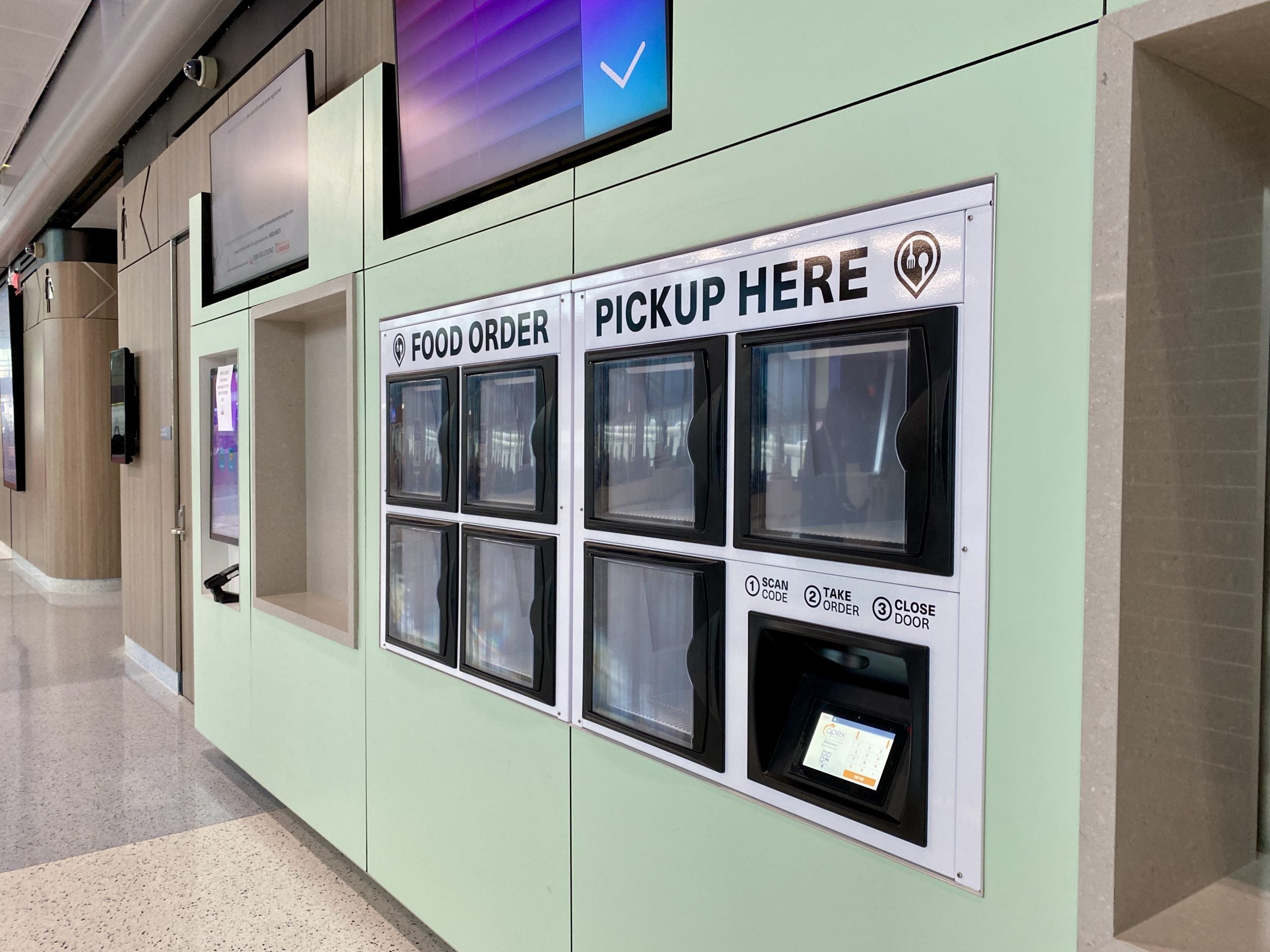 While there are several restaurants and bars, there's no need to actually visit them. Instead, passengers can order it from their phones and have it delivered to their seat by scanning a QR code. If you haven't really settled into a seat yet, or you want to move around before your flight, you can order via a kiosk and choose to pick your order up at a centralized station, instead.