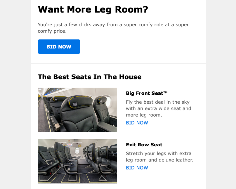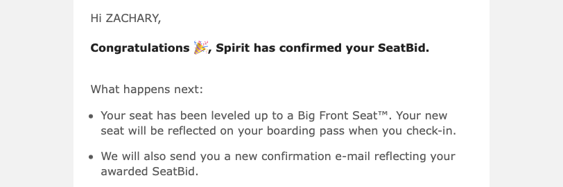 So, when I received the email about scoring access to a discount upfront seat, I wanted to learn more. Turns out, Spirit has contracted PlusGrade, a digital upgrade solution platform, to allow travelers to submit bids for better seats.