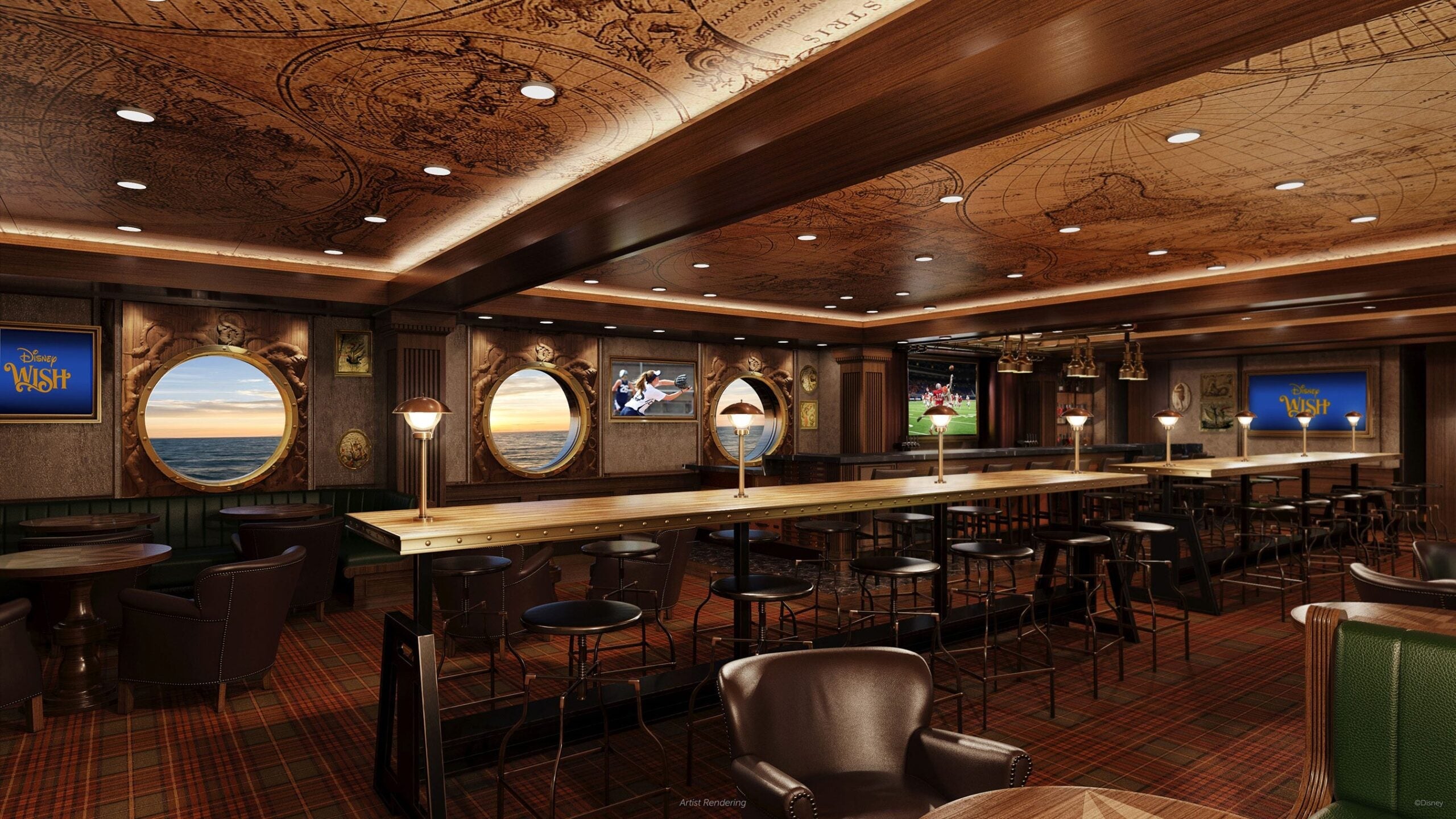 For adults craving a pint, there is also the Keg & Compass pub, which draws inspiration from an 1800s Norwegian sailor's map room. It serves three custom craft brews you can only get on Disney Wish.