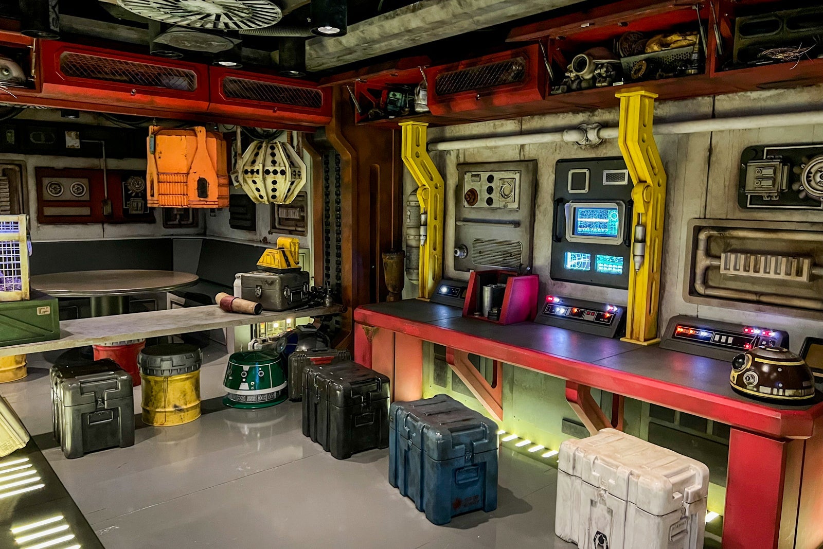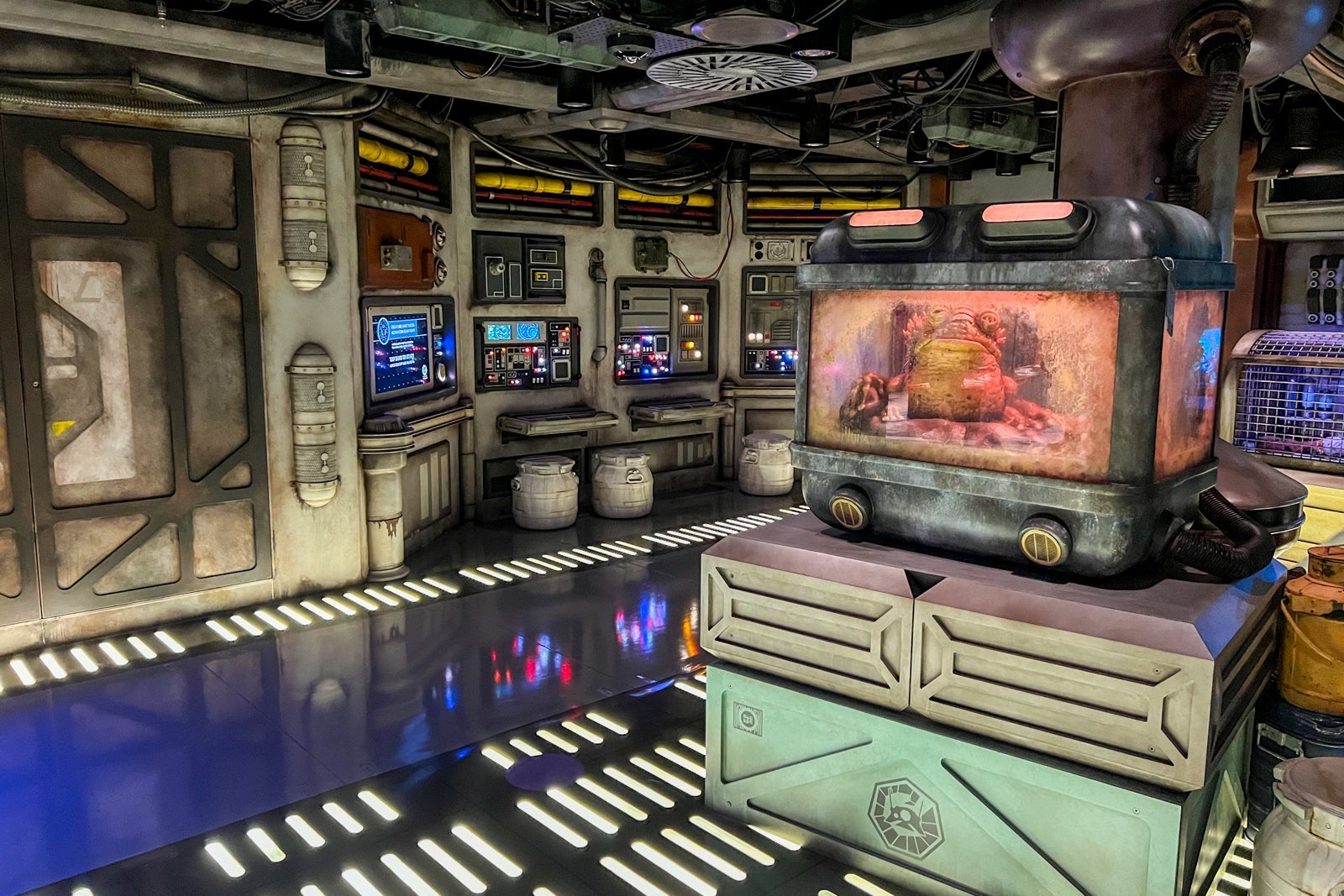Ships from all timelines of the "Star Wars" franchise fly across seven monitors that feature such insanely high resolutions that it really looks like Star Destroyers, TIE Fighters, the Millennium Falcon and more are right outside. The Imagineers worked closely with Lucasfilm to unlock the entire library of ships. Every ship that whizzes by has a name, a story and a place in the greater "Star Wars" universe. You can expect to take that jump through hyperspace to a different part of the galaxy every seven minutes or so.