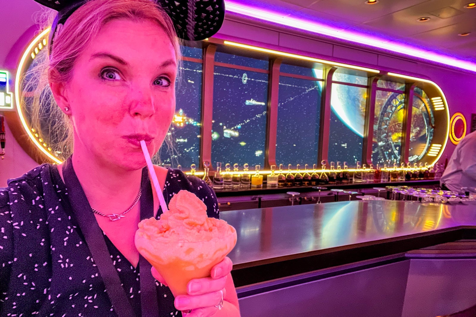 However, after watching (and feeling) the ship make multiple jumps to hyperspace, I can tell you this is a must-visit spot to grab a drink. You'll love sipping a space-themed cocktail at the bar while watching ships pass by — even if you don't go for the $5,000 "Star Wars" drink.