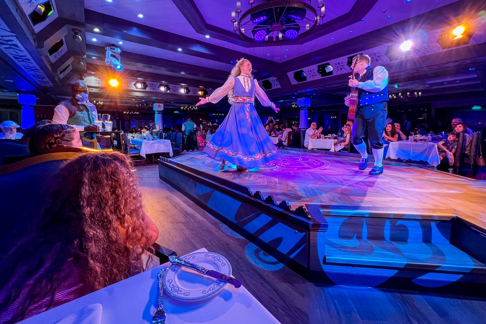 The Arendelle menu is Nordic-influenced, though there are options from a little closer to home, too, should you prefer less-adventurous items. The food here was some of our favorite on the ship, and the show was also pretty top-notch. There's even a celebration line toward the end similar to what happens in Tiana's Place aboard Disney Wonder.