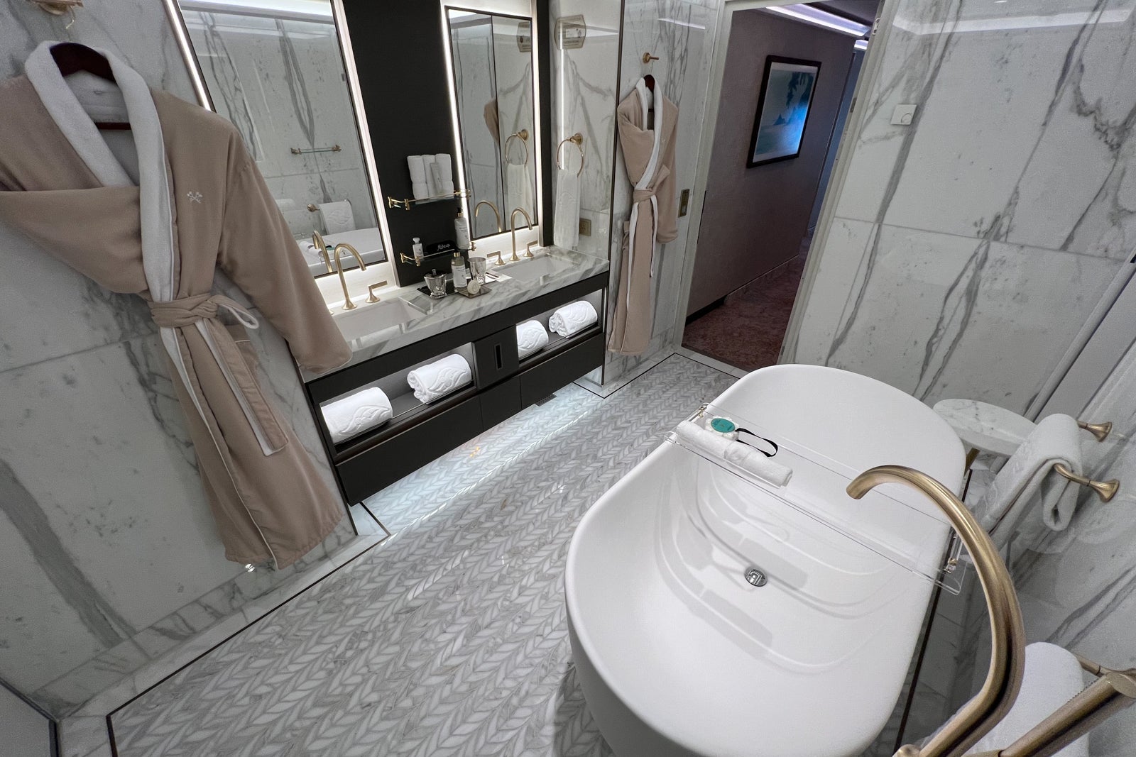 Each one-bedroom concierge suite has a separate living room, walk-in closets, two 43-inch TVs and two bathrooms, one of which features a rain shower, a bathtub and a double vanity.