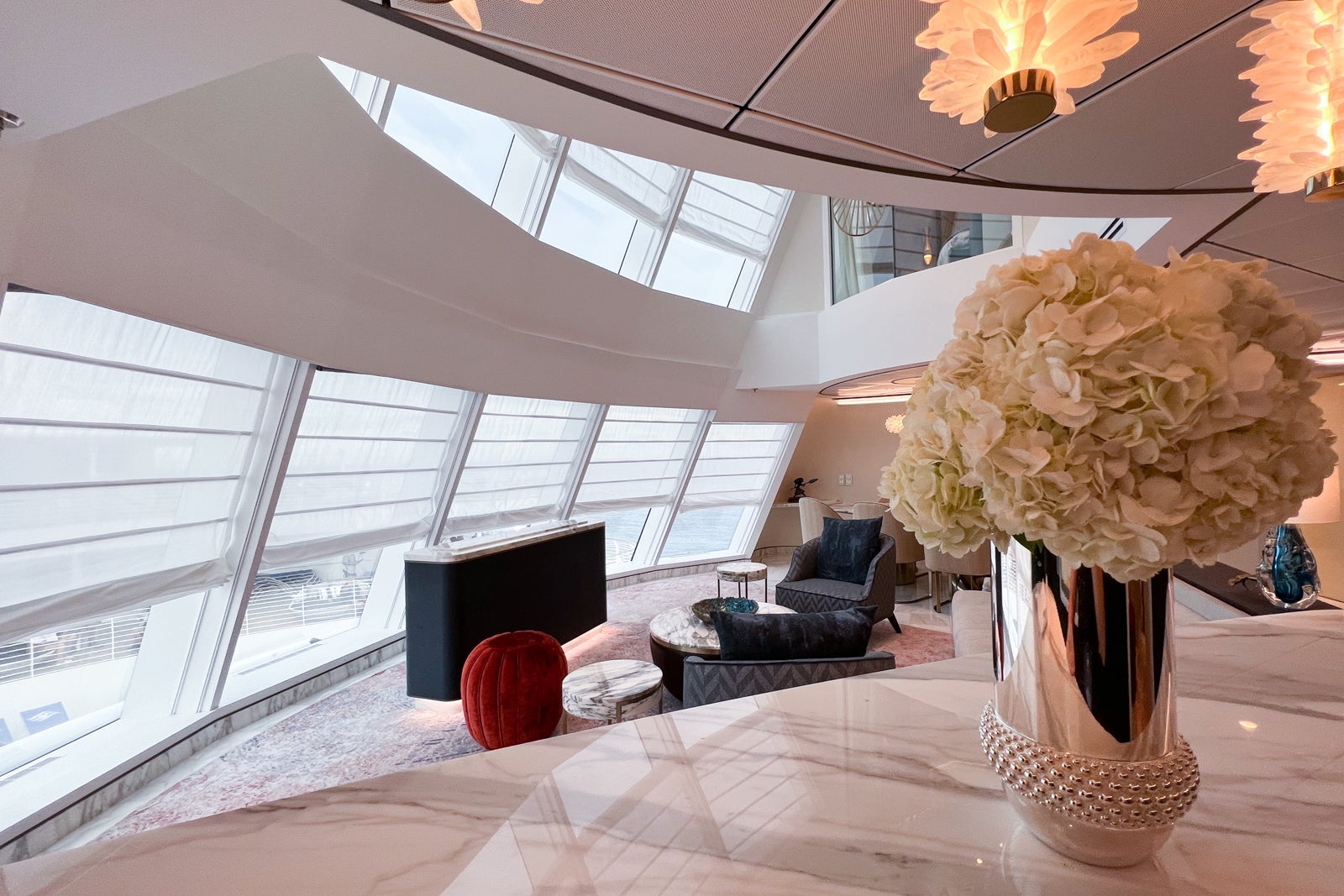 If you want the best of the best, go for the almost 2,000-square-foot Wish Tower Suite, which is set in the forward funnel of the ship. It's hard to believe this is an actual place people can stay on a ship.