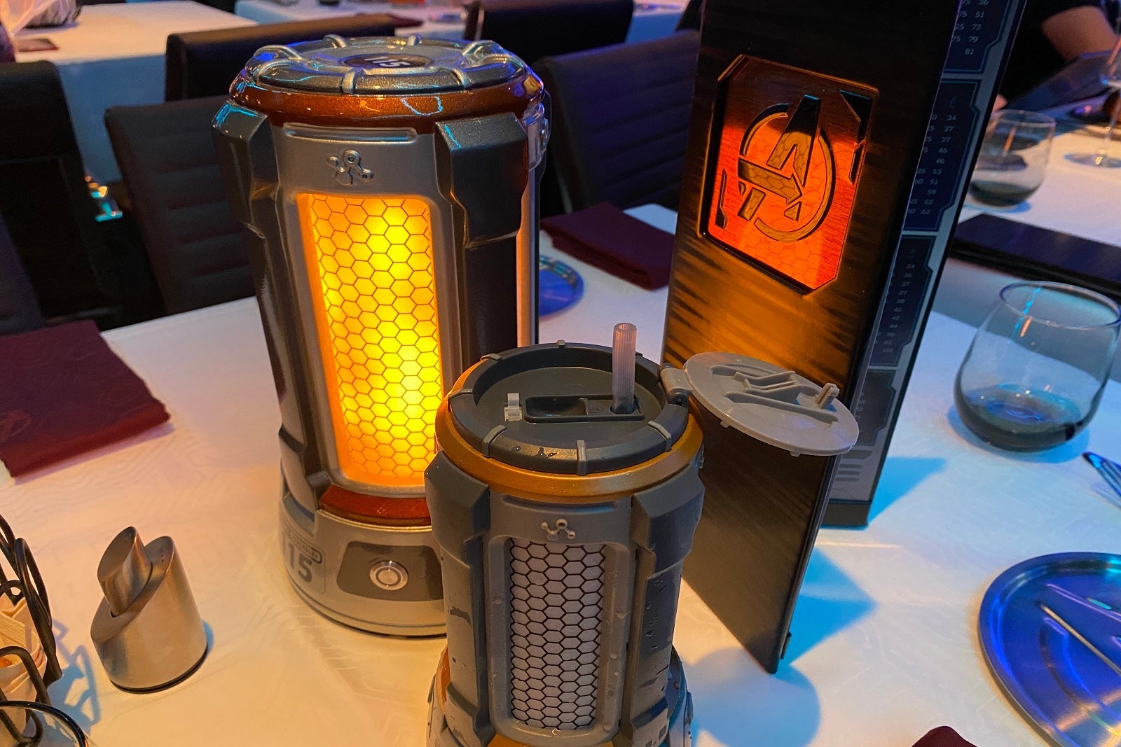 When it's your turn to dine in the Worlds of Marvel restaurant, which is the first-ever Marvel cinematic dining adventure, you'll have a role to play in saving the universe. As you eat at one of the 120 tables, you'll have access to a "quantum core" to use throughout your meal.