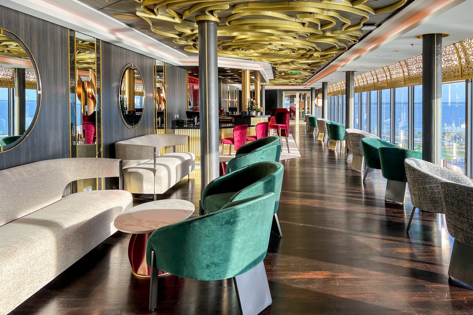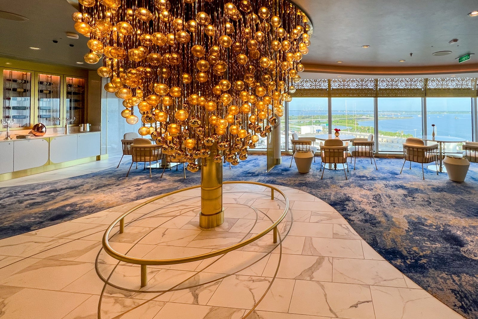 As a child of the 1980s who lived and breathed all things "Star Wars" growing up, I had a blast enjoying a few otherworldly drinks from this gold-laden lounge with views of the universe beyond. It's no "Star Wars" hotel, but it's still pretty memorable.
