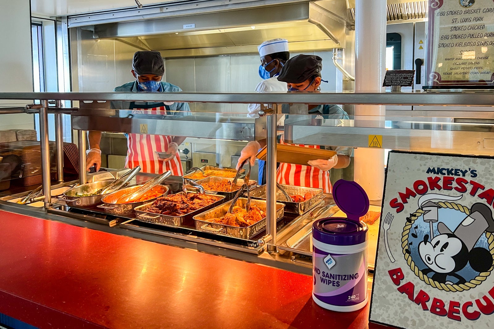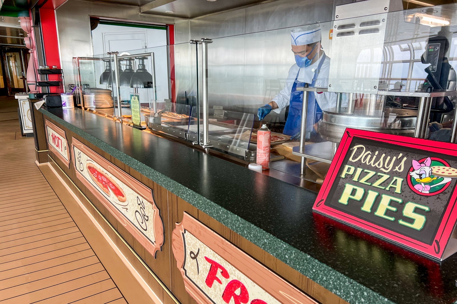 On the upper deck, you'll discover a number of poolside options, including Mickey's Smokestack Barbecue, Donald's Cantina, Daisy's Pizza Pies, Goofy's Grill and Sweet Minnie's Ice Cream.