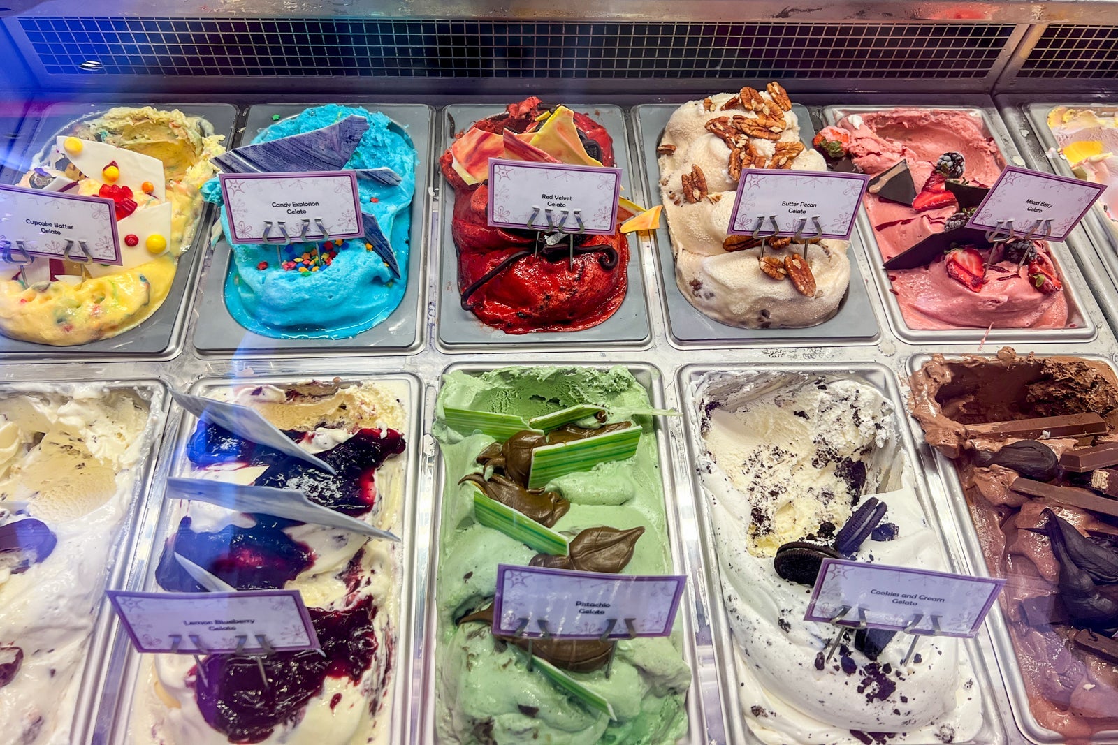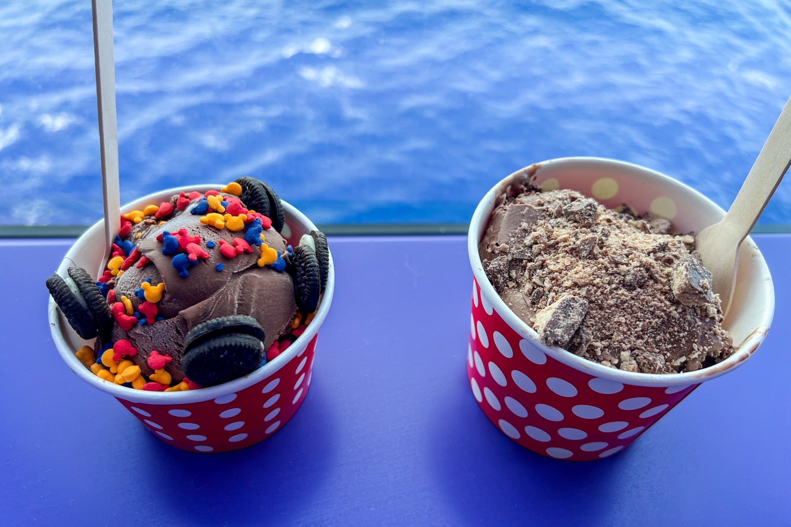On the Wish, there's a new dessert shop called Inside Out: Joyful Sweets, where about 40 flavors of gelato and ice cream are served.