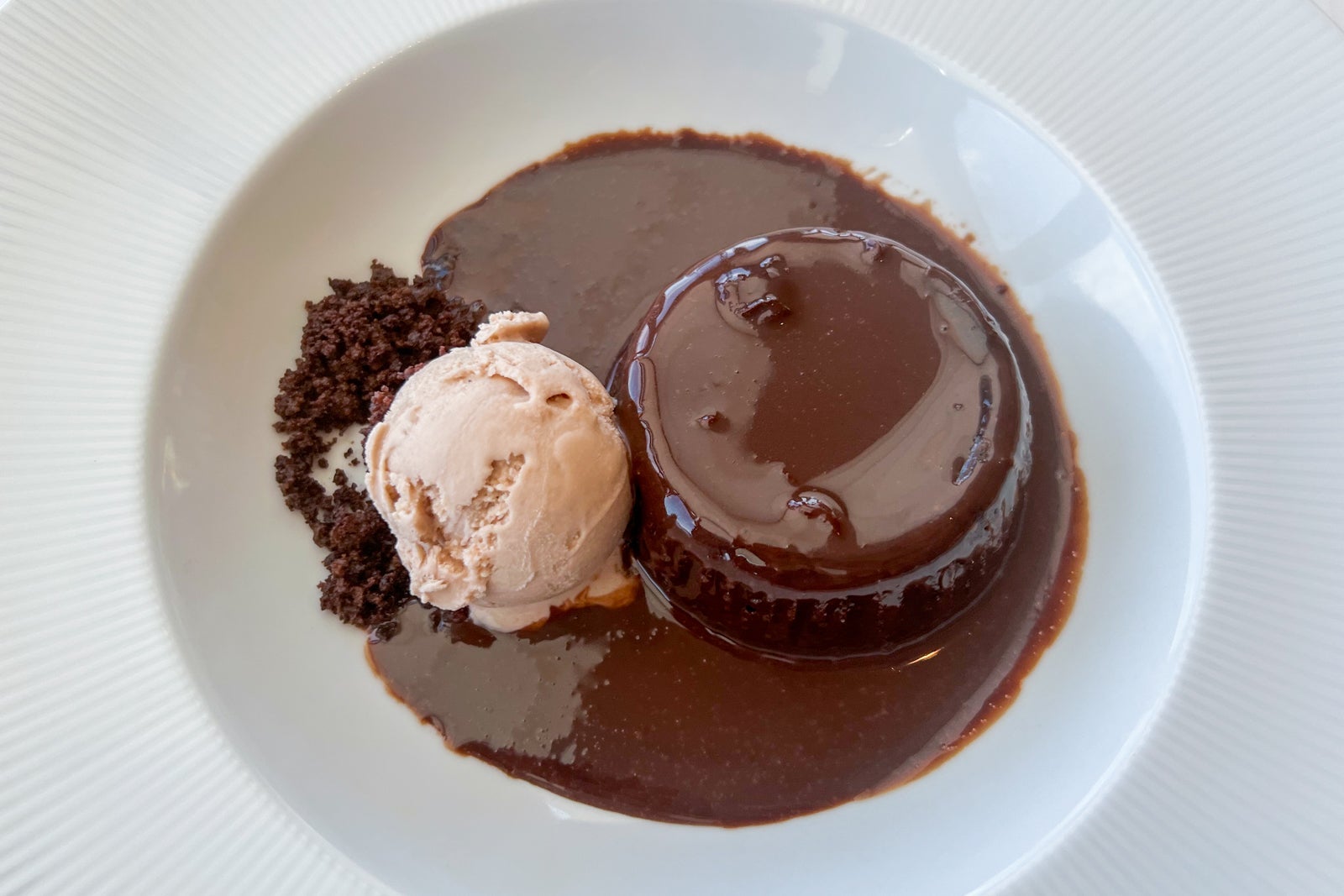 After all that indulgence, the dessert menu felt like a trap, but one that I gleefully fell into. I wanted to appear at least a little reasonable, so I only ordered one treat — the warm amaretto chocolate fondant with hazelnut gelato and mocha chocolate soil.