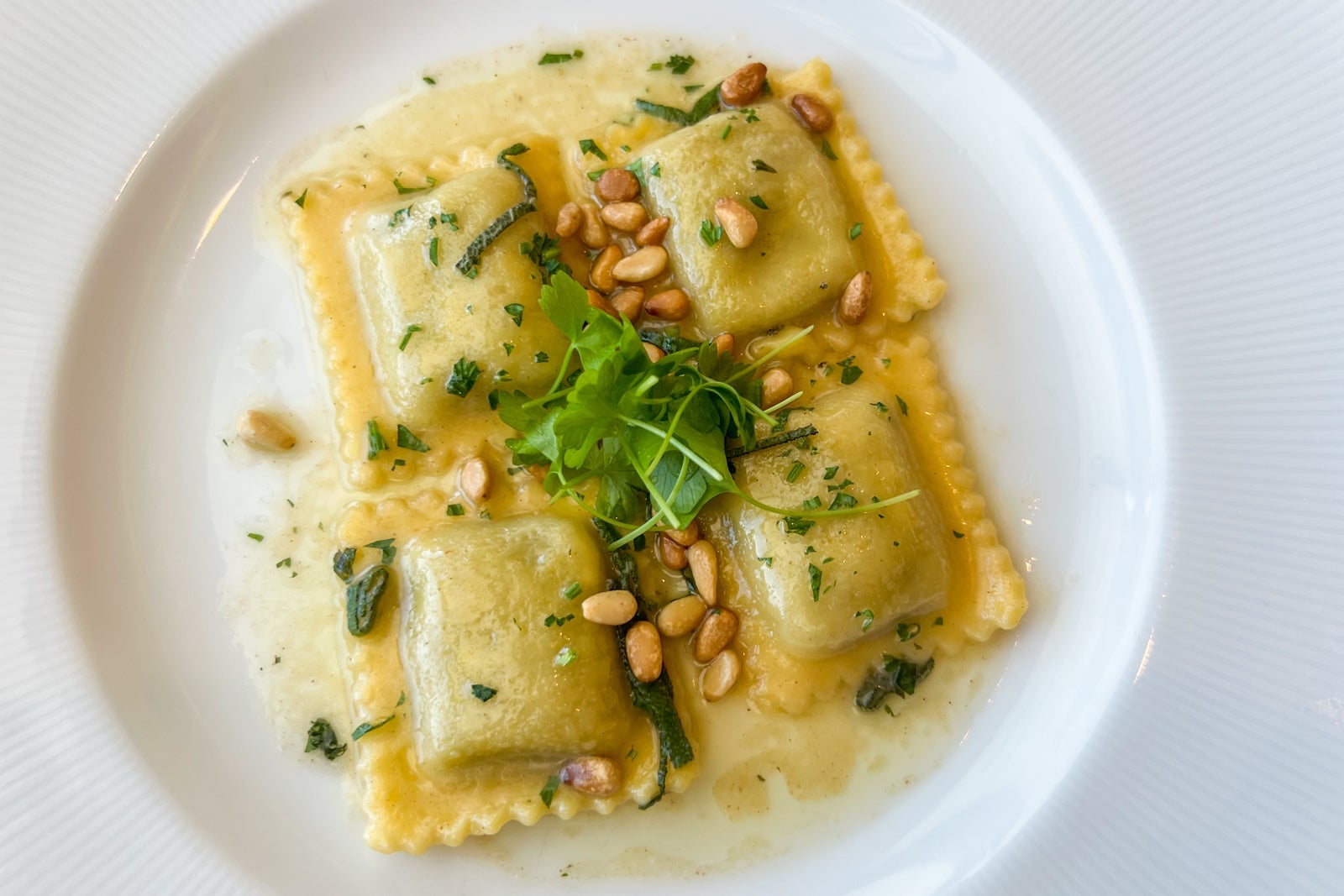 The wild mushroom ravioli with its nut brown butter and toasted pine nuts was absolutely heavenly and not to miss, even though it was barely 10 a.m.