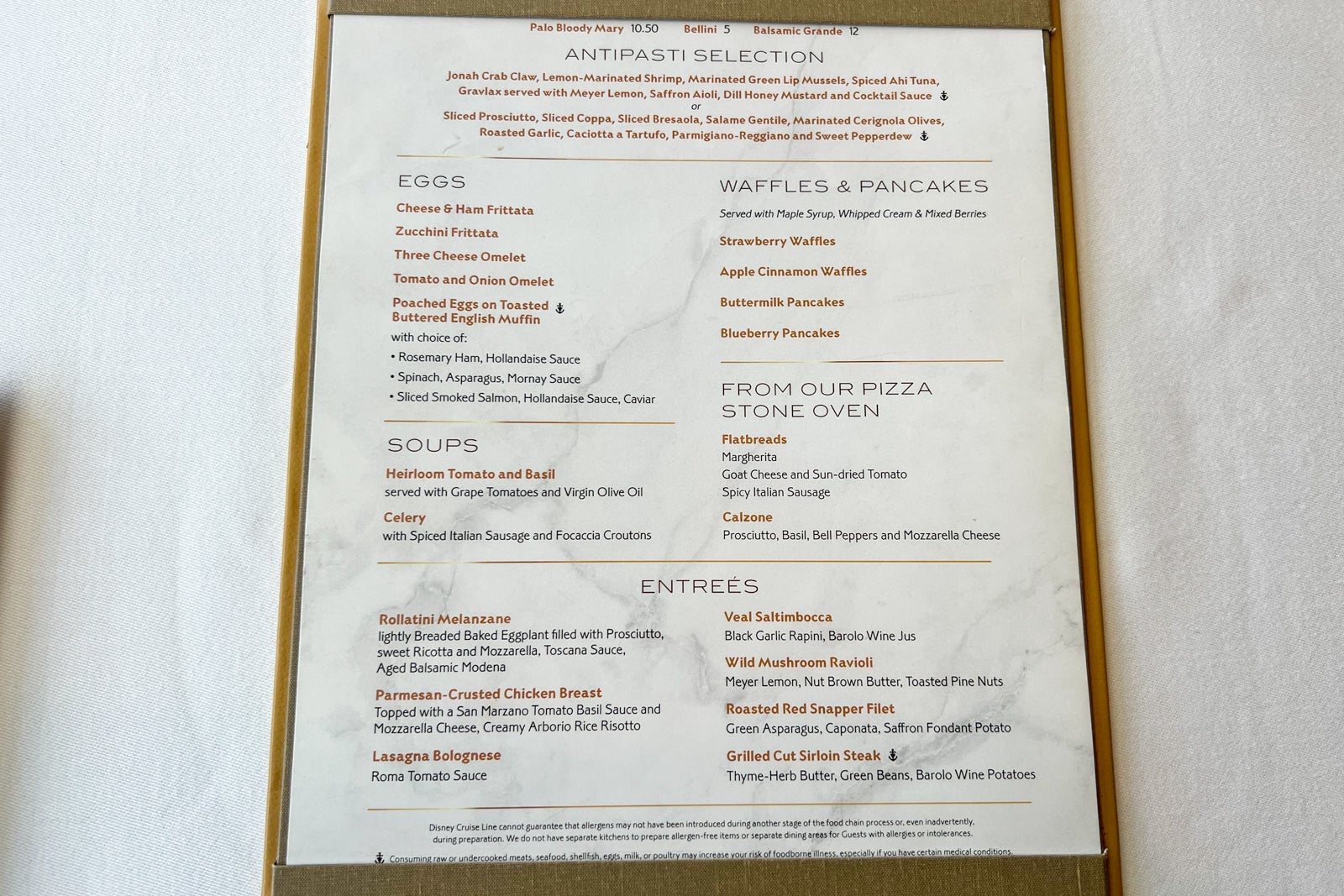 While I've had dinner at Palo a couple of times, I tried the Palo brunch for the first time on my most recent sailing aboard Disney Magic. Though brunch is not a buffet, the $50 price gets you anything on the menu — and as much as you want to try. Just order everything one plate at a time from your waiter.