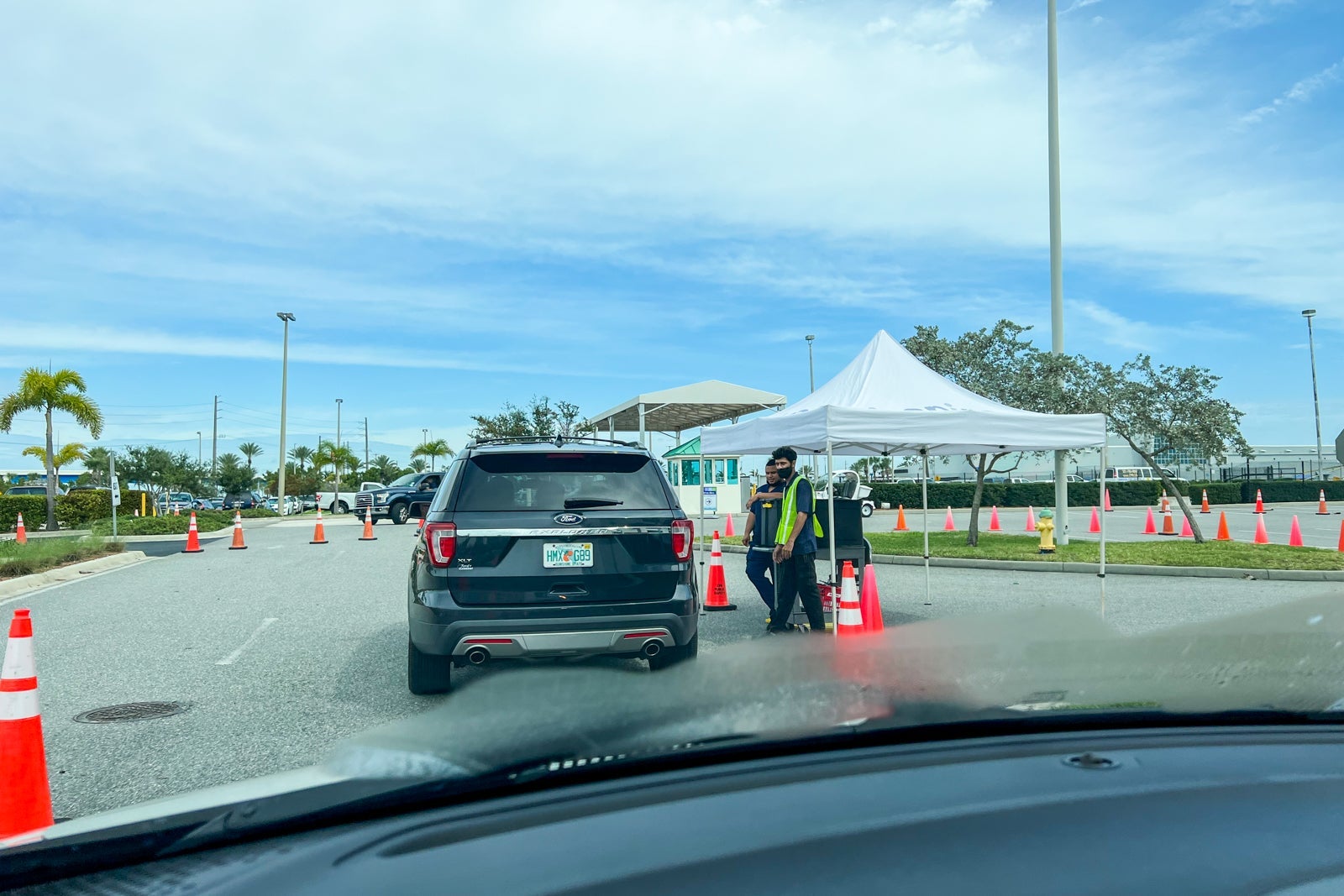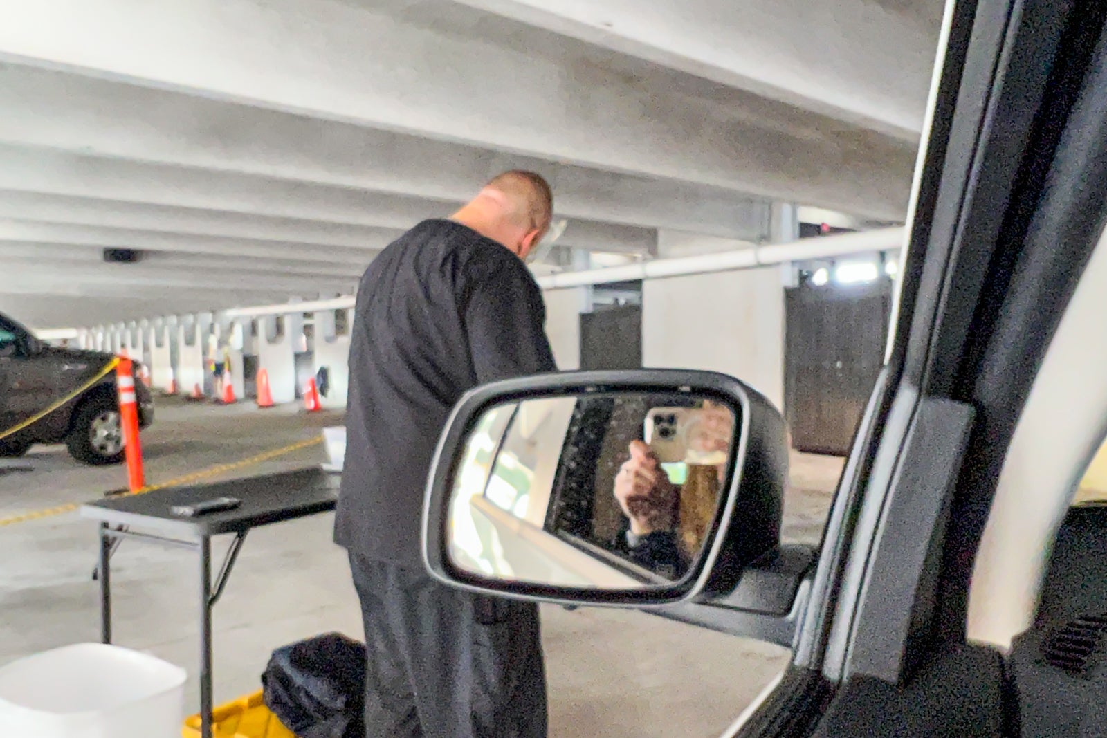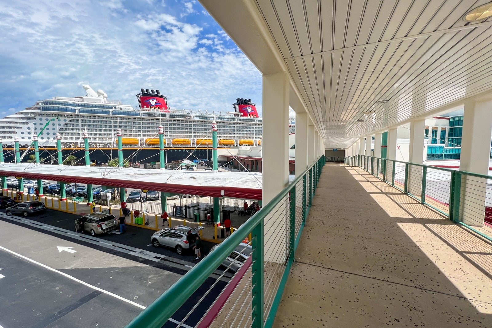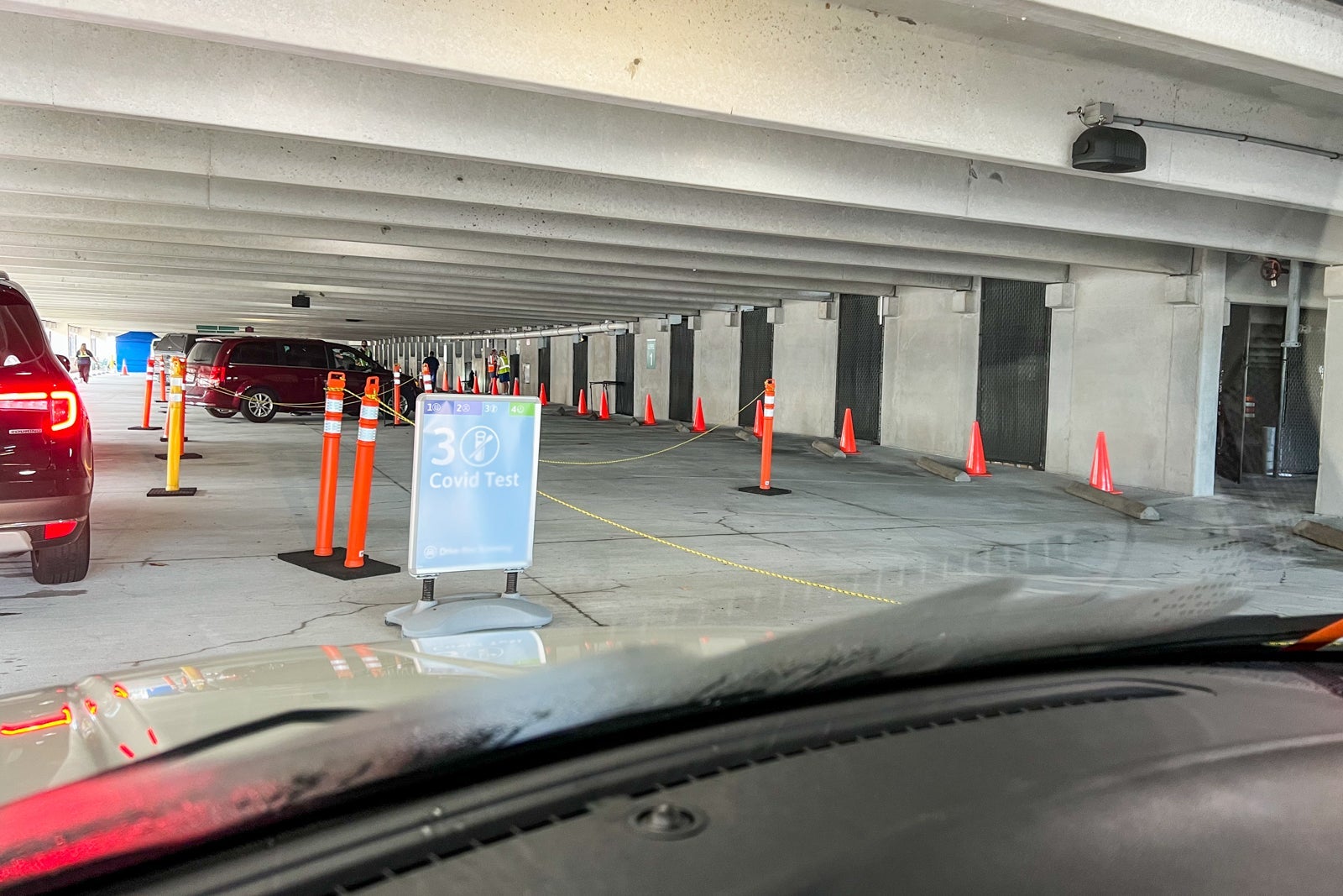 For Disney, testing occurred after we dropped off our luggage. Because we rented a car and drove to the port from the airport (which I recommend doing in case you have an unexpected positive test result and are unable to board), we were directed to enter the parking garage, where we self-tested ourselves with provided swabs while being monitored in our car. Had we come without a car, we would've been directed to enter one of several staffed tents to complete our tests.