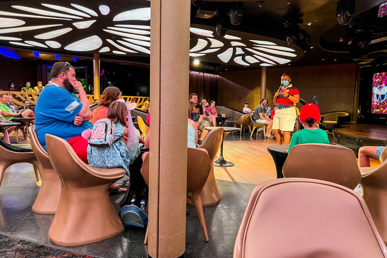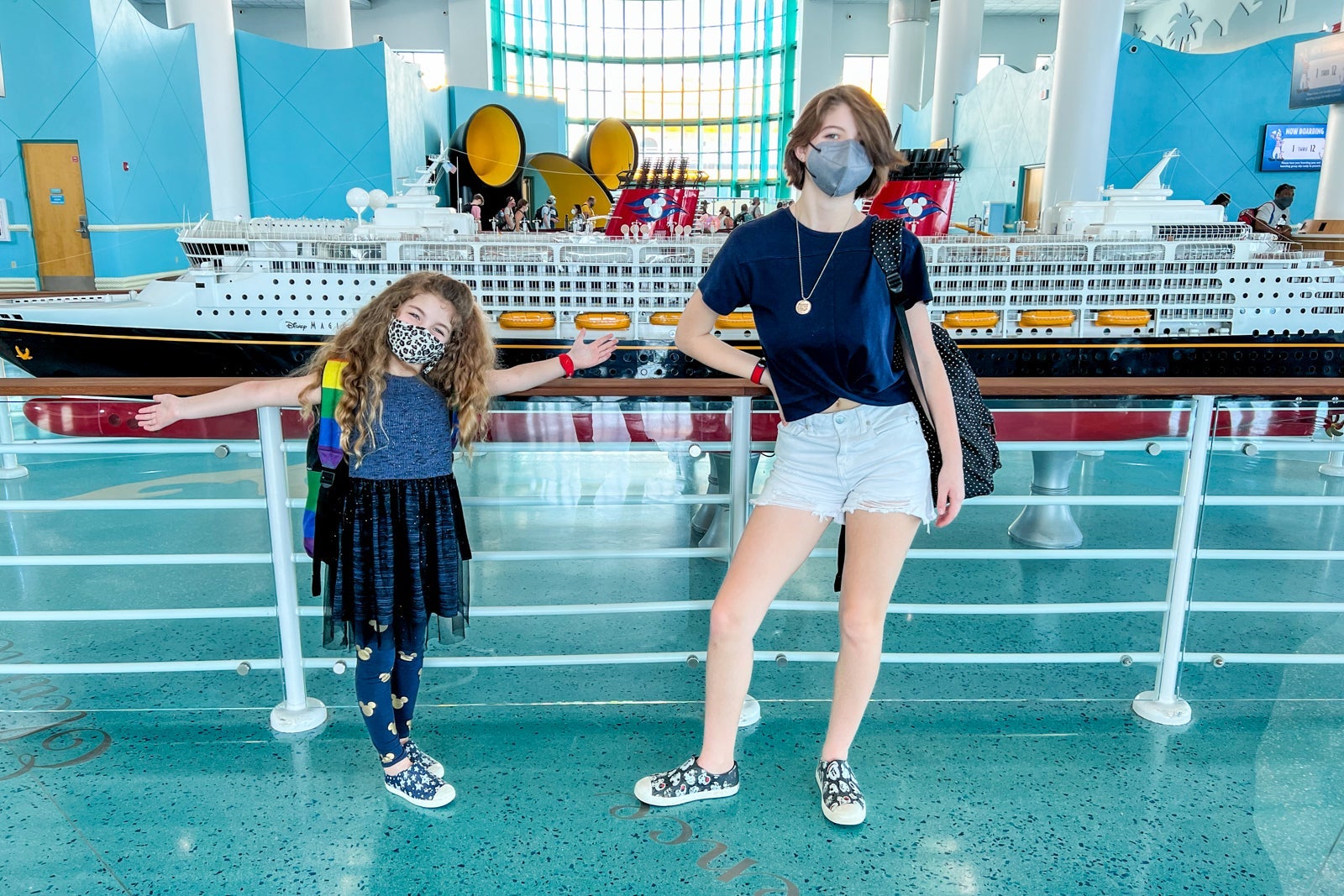 Because our sailing was the first with Disney that had reduced masking requirements (unlike others that required wearing masks indoors unless eating, drinking or spending time in your stateroom), we were only required to wear masks while in the Disney Cruise Line terminal, on motorcoach transportation and in the Walt Disney Theatre. That meant the majority of cruisers did not wear masks during most of our trip.