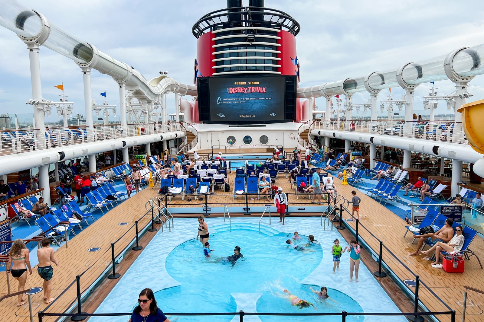 In fact, other than the time we had the pool area to ourselves when we once sailed in a concierge-level suite, getting us on the ship faster and therefore to the pools before others further back in the embarkation process, we'd really never gotten in before. Because, well, you can see for yourself in these images from 2019.
