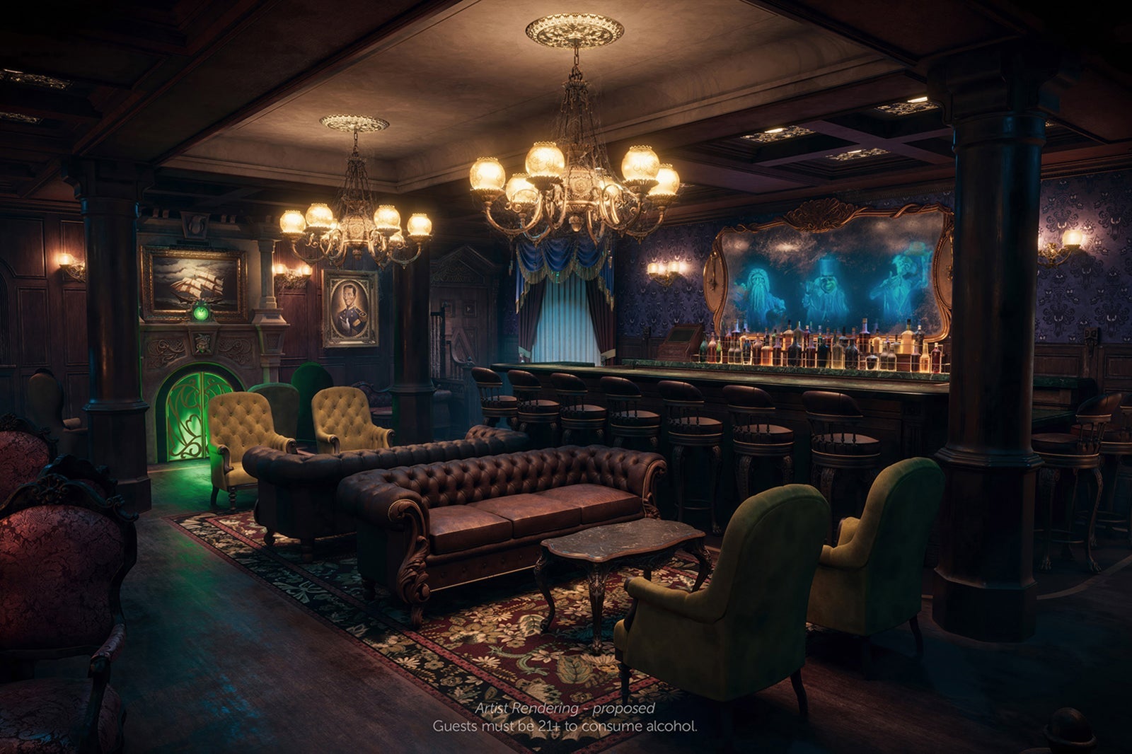 This lounge brings in the magic, humor and styling of the classic Haunted Mansion attraction at Disney parks but does so in the setting of a first-class drawing room from the golden age of classic ocean liners.