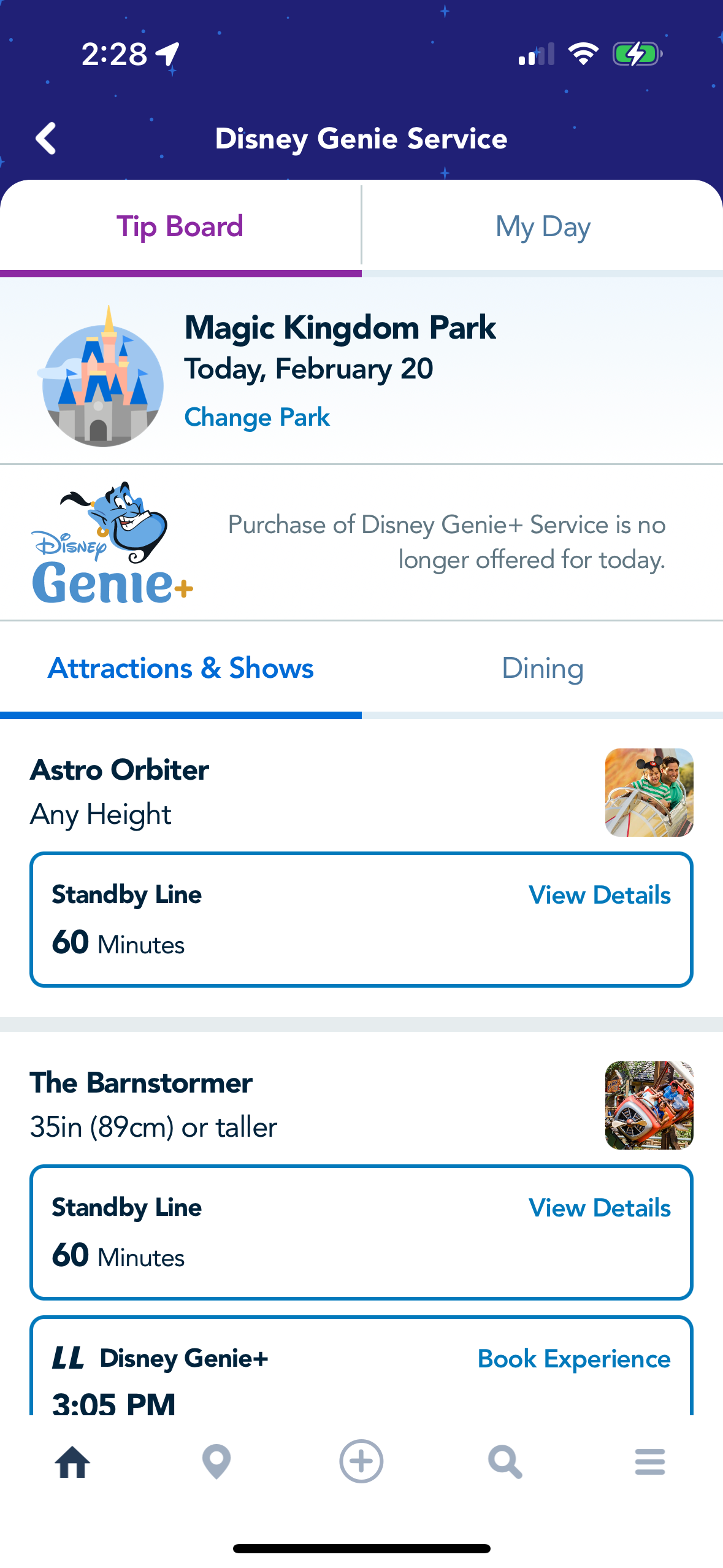 The same thing happened again on Monday. Genie+ was available for purchase throughout the morning, but the service sold out shortly after 2 p.m. for the second day in a row.
