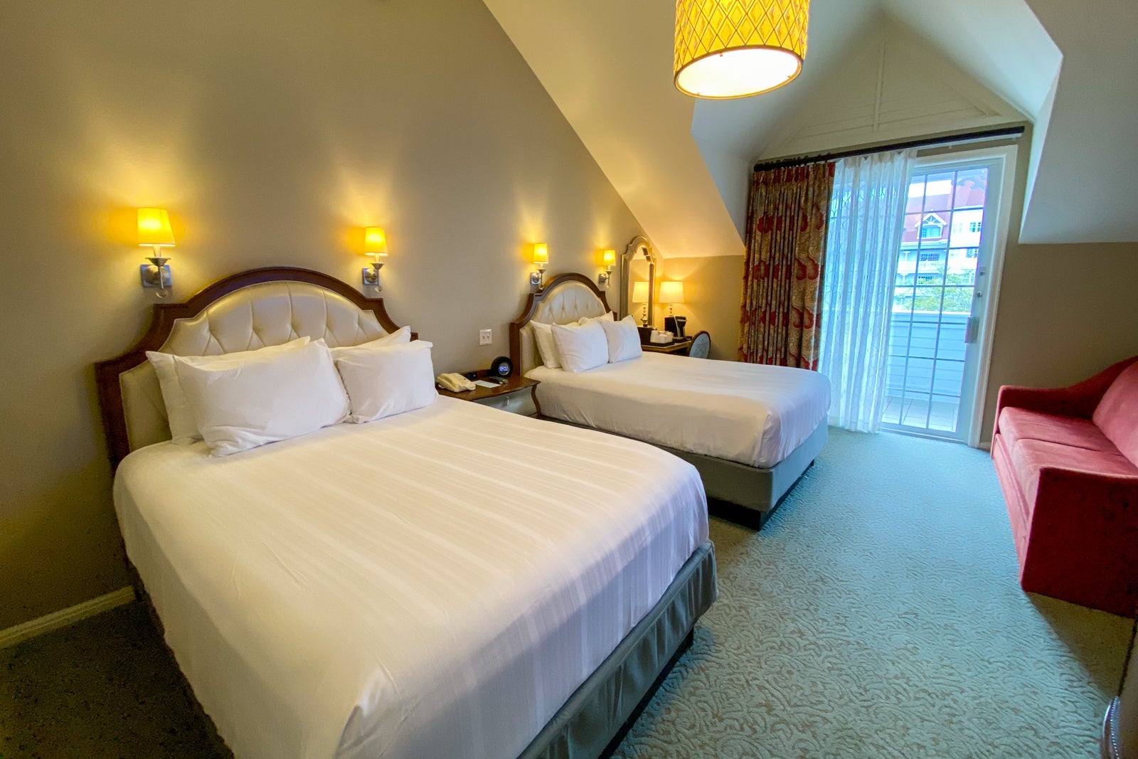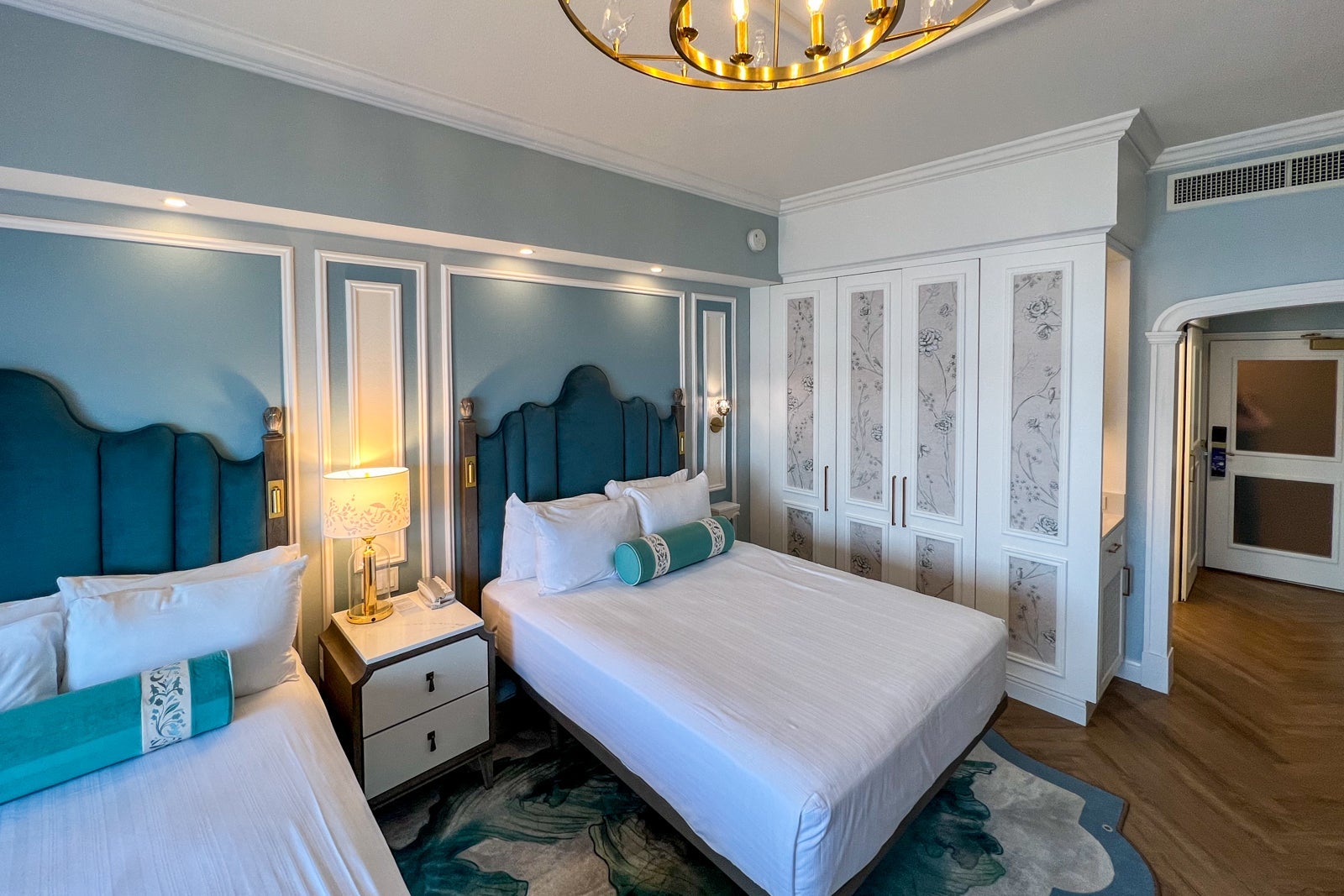 There is a variety of room and suite sizes at the Grand Floridian, but the new resort studio rooms are all the same: two queen beds and a sofa daybed.