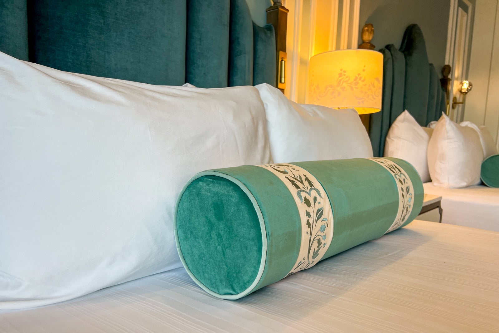 For example, the green pillows below not only bring in the greenery of the outside, but they have a nod to the penguins from "Mary Poppins" that also adorn the Disney Vacation Club lobby fountain.
