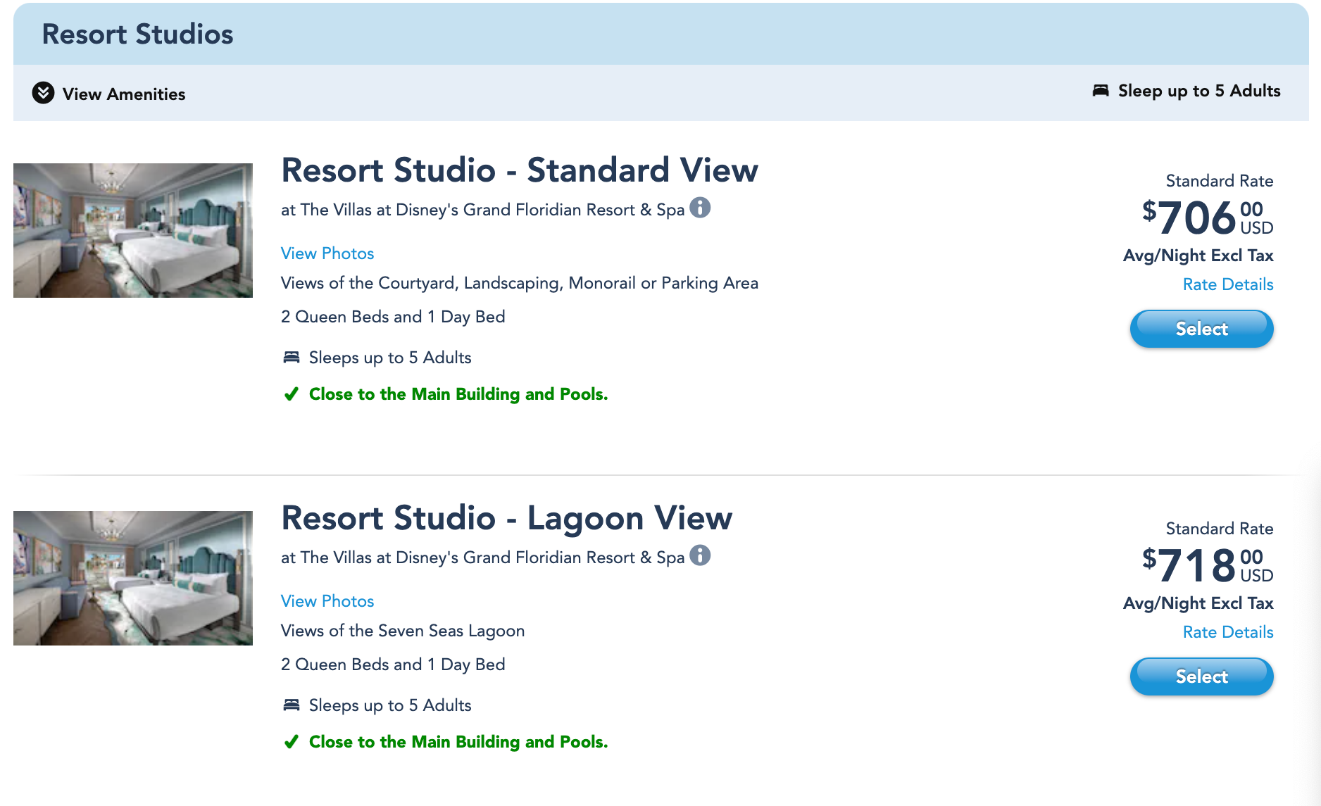 First, you can rent points from an owner — either on a 1:1 basis via an individual or through a larger company like David's Vacation Club Rentals. Studio rooms at the Grand Floridian start at 16 points per night and it's common for DVC points to rent close to $20 per point these days. Frankly, getting these studios for anywhere close to that rate could be a great deal compared to cash rates.