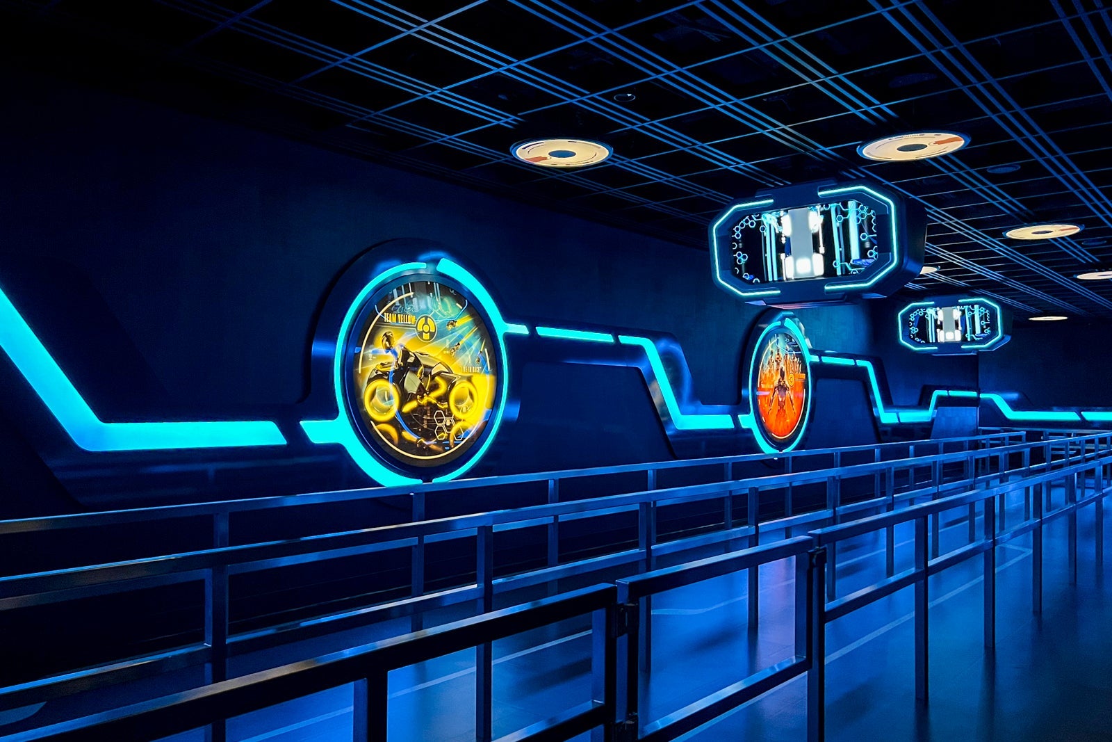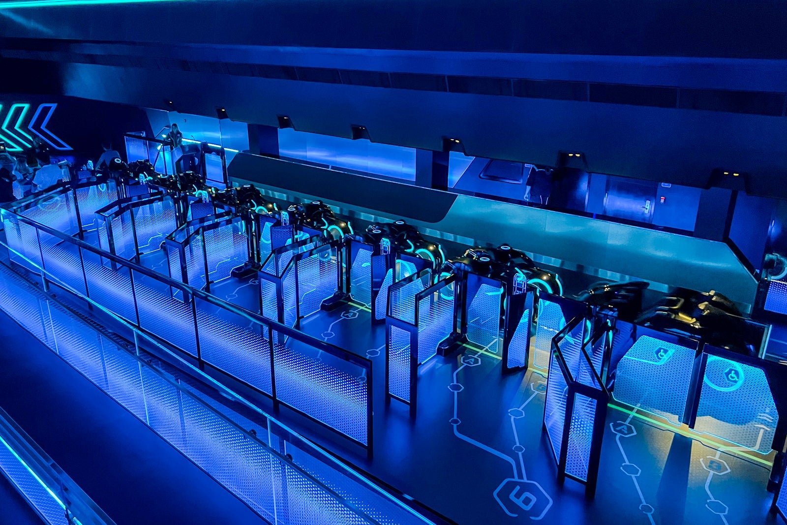 The queue inside the ride is equally (if not more) impressive, with on-theme lighting and an immersive ride terminal where you hop on your "lightcycle" ride car. However, that's where my experience started to go downhill.