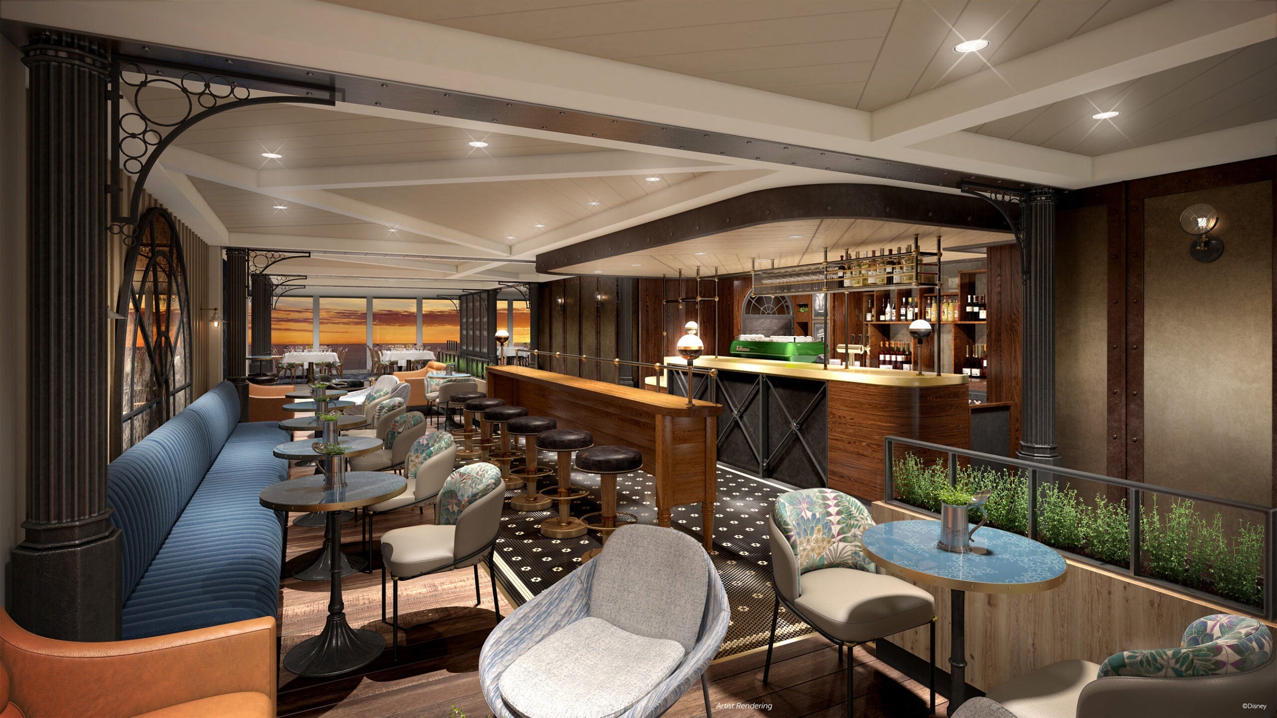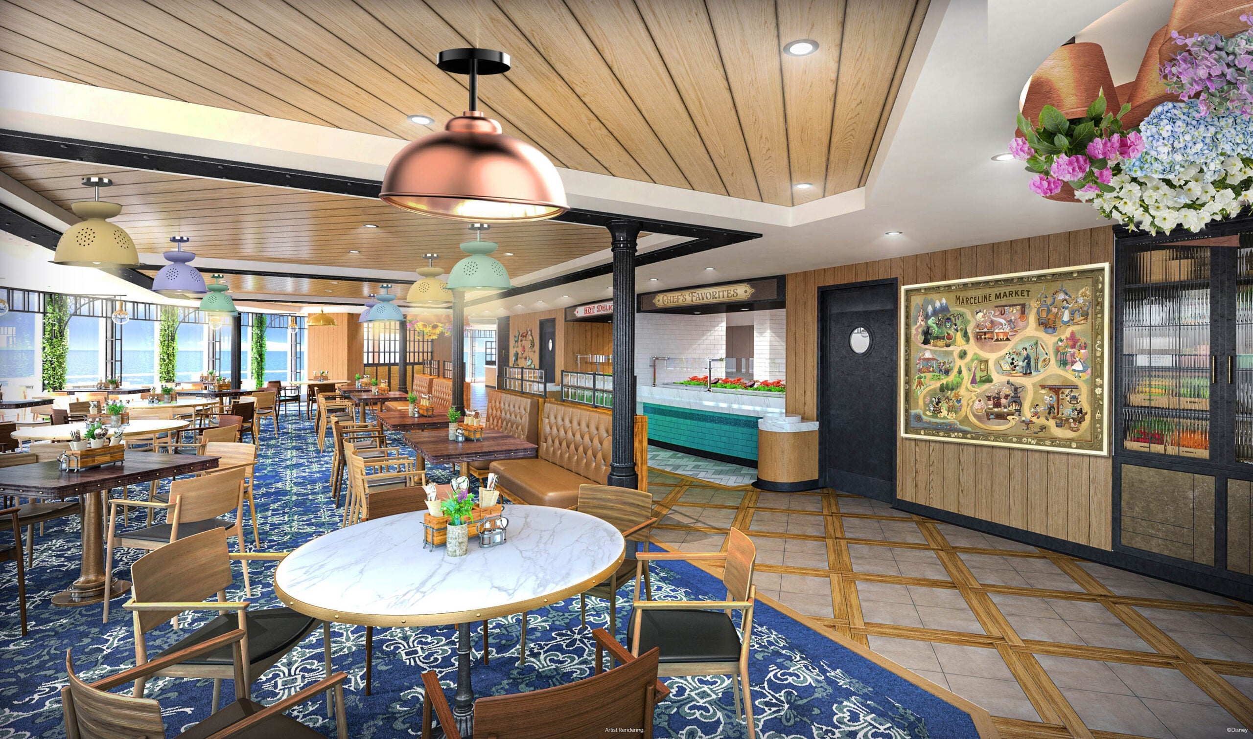 Named for Walt Disney's early childhood hometown in Missouri, Marceline Market will be a food hall with ever-changing dishes inspired by marketplaces around the world. Passengers will be able to dine inside or outside with views of the ocean.