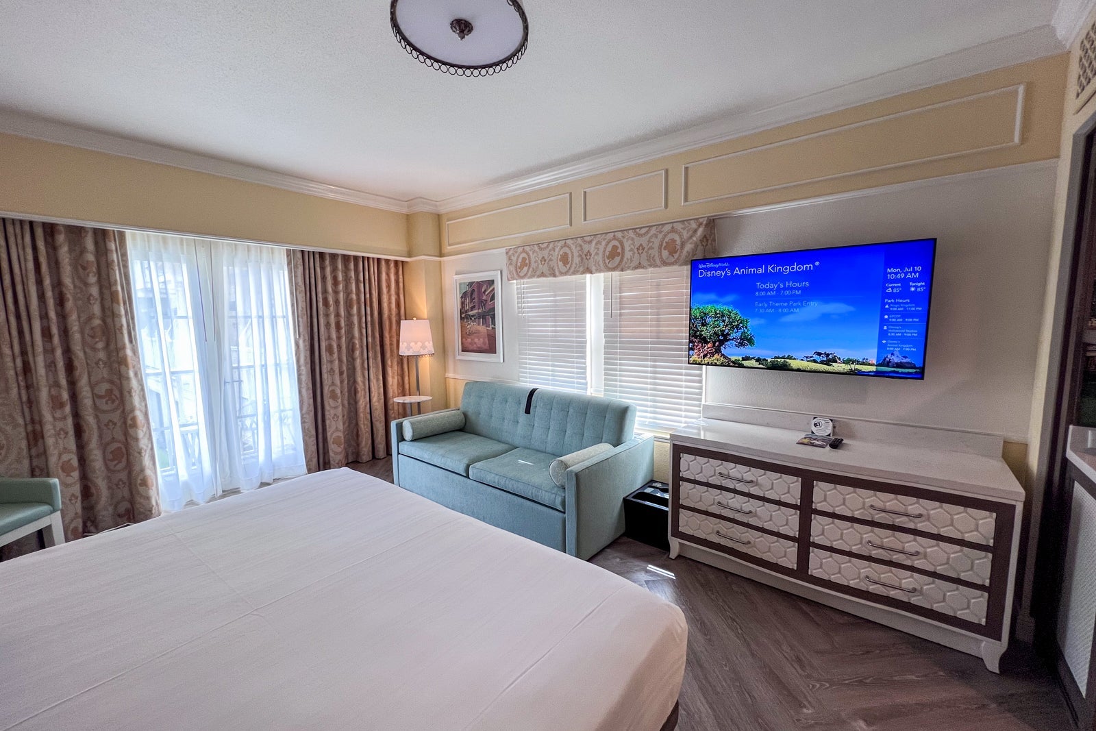 My room at the Grand Floridian featured a pullout sofa bed that could sleep two, and a king-size bed that was elevated higher than what you'd normally find at a hotel — providing ample room to stow luggage under the bed and out of the way during a stay.