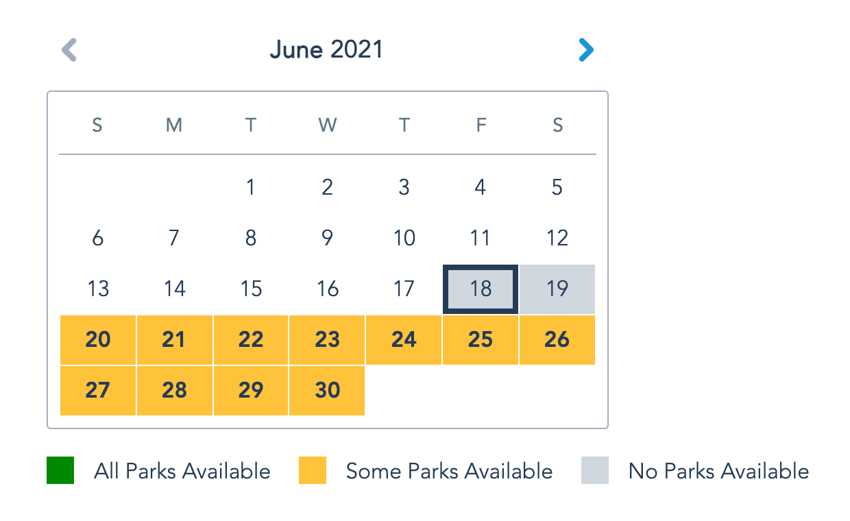 Disney World has capped guest capacity to aid with social distancing. It now requires reservations via a Park Pass reservation system and simply having a Disney hotel reservation doesn't guarantee you'll get theme park admission. In fact, if you aren't planning several months out, you may not get the park you want.