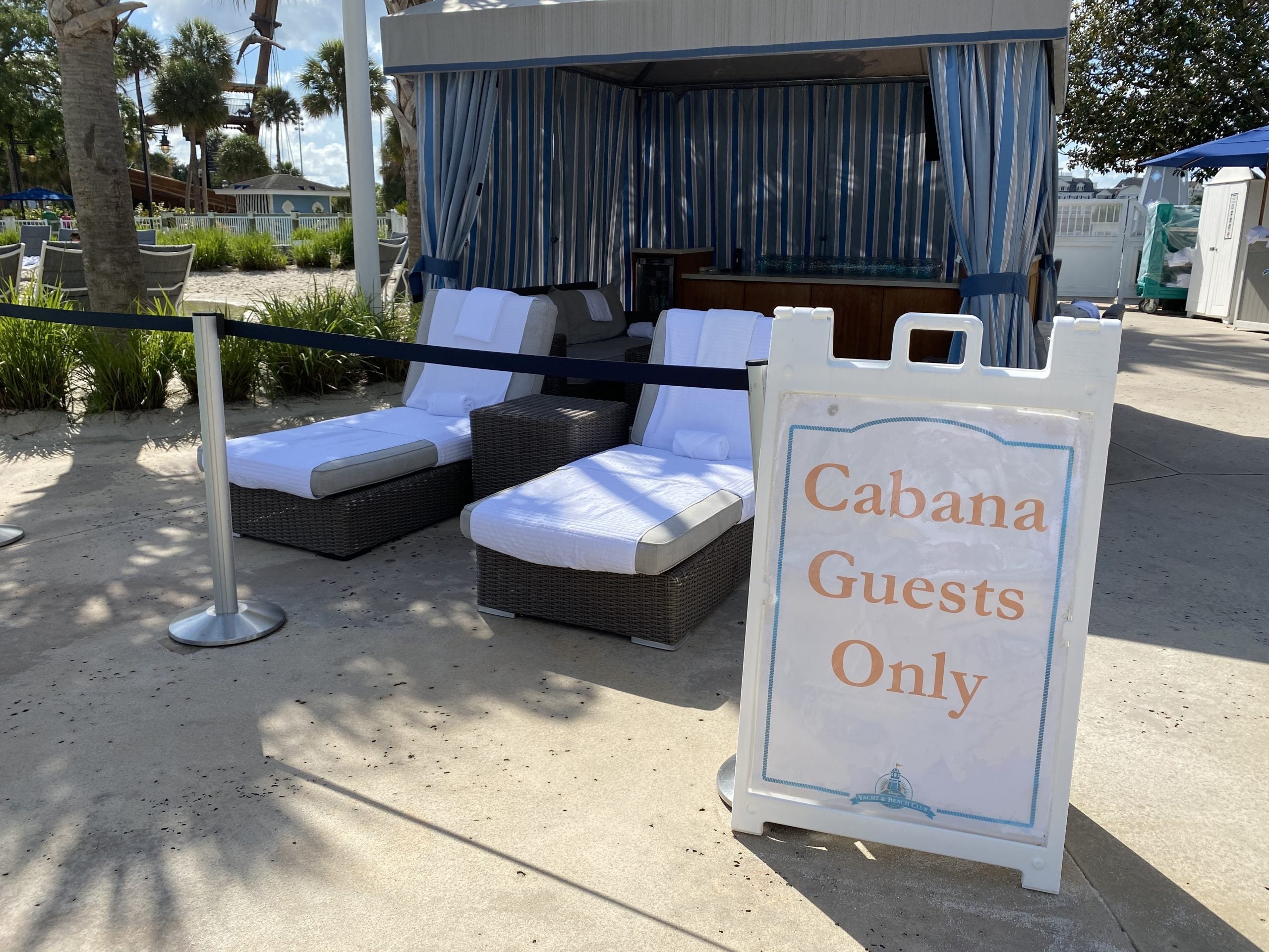 If you want a cabana, it's best to try by calling (407)-939-7529 at the 60-day mark before your trip starts. Disney's Contemporary Resort and Disney's Grand Floridian Resort also both have pool cabanas available for advance reservation.