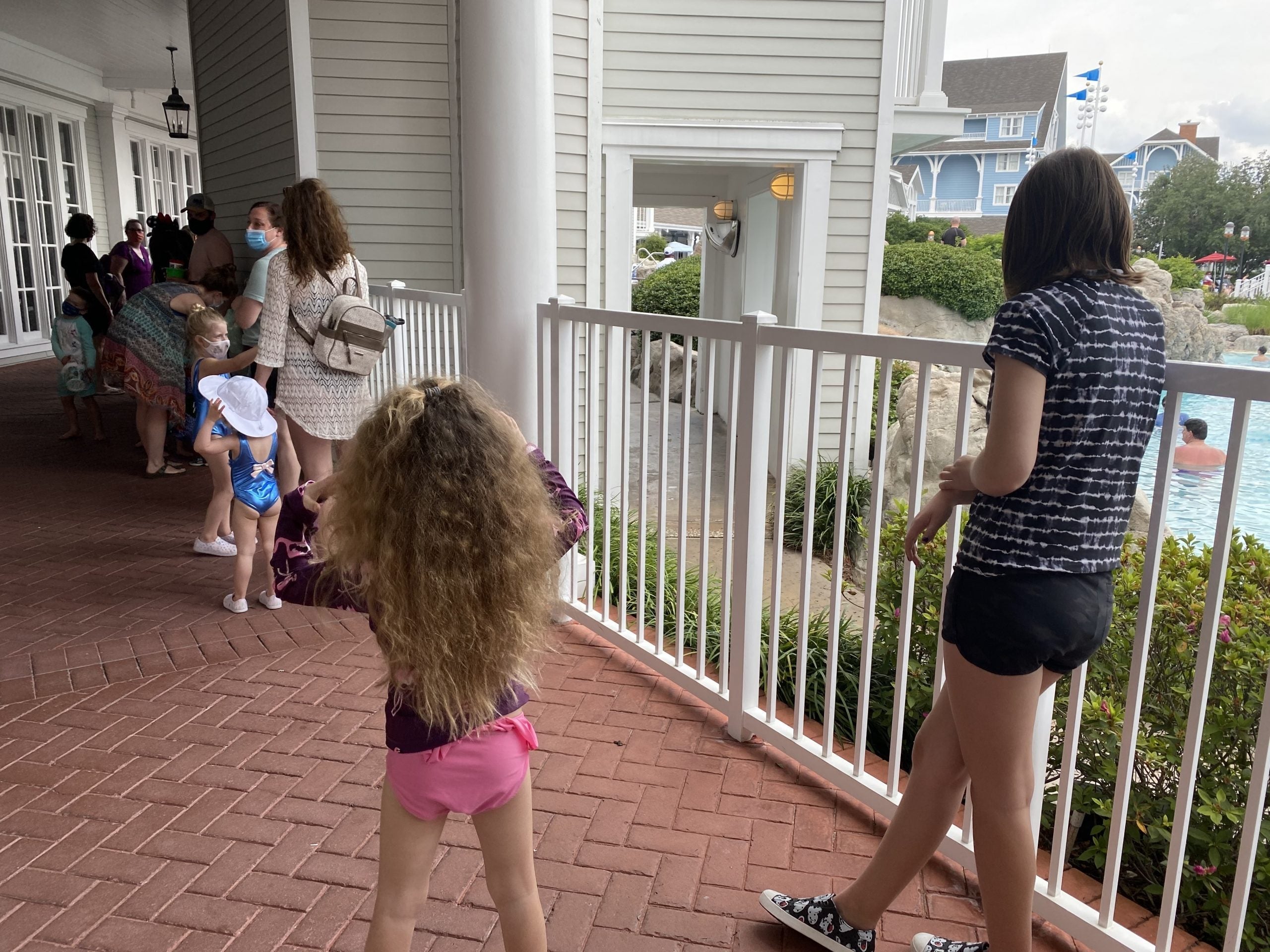 On the afternoon we had devoted to enjoying the resort pool, we rounded the corner to the entrance only to find ... a line.