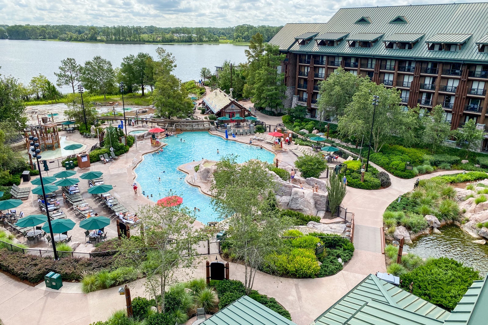 The Yosemite Suite enjoys what has to be the best view in all of Disney's Wilderness Lodge with a huge balcony that overlooks the entire Wilderness Lodge pool area, the waterfall and likely even a peek at the evening fireworks high in the sky above the Magic Kingdom.