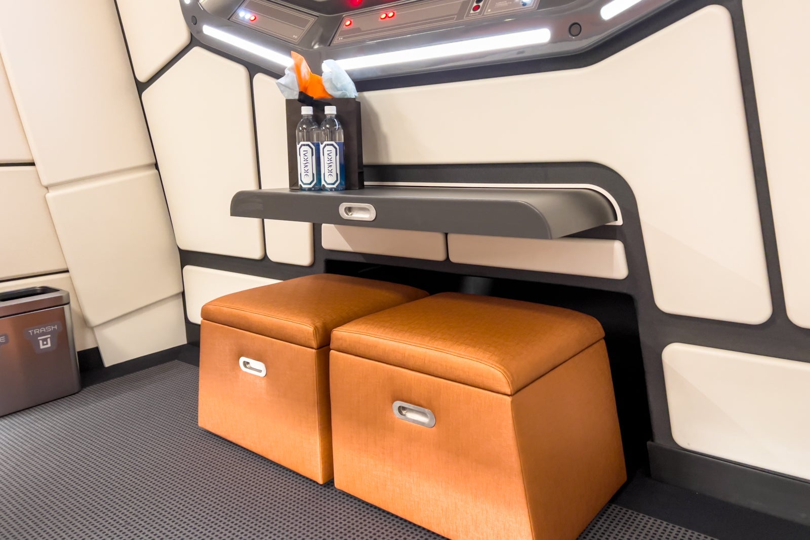"Things like the table beneath the port pulling out when needed, the comfortable rolling stools that fit underneath the desk and the receding lights in the room ... We wanted to save space and make it feel real with that 'Star Wars' aesthetic," he said.