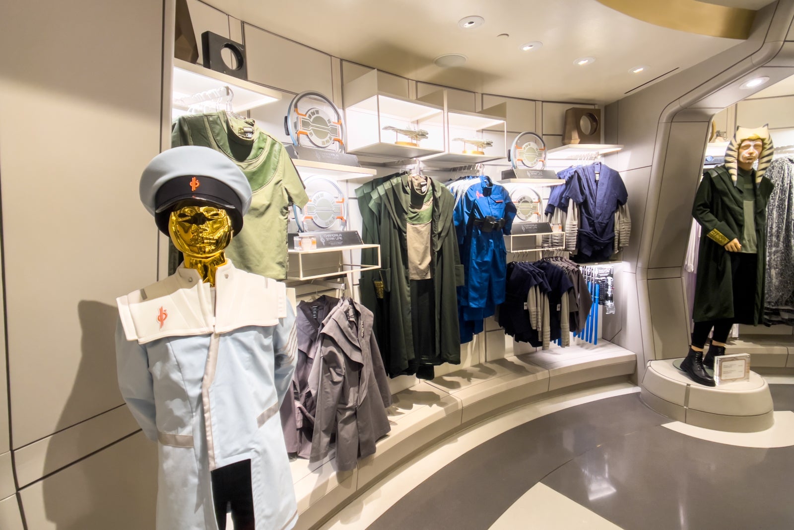 "You can buy a version of the galactic card game Sabacc played in the lounge, complete with authentic tokens," Hampton said. "We have the gray velvet cloak Padmé Amidala, queen and then senator of Naboo, wore in 'Star Wars: Episode II — Attack of the Clones,' a tunic worn for lightsaber training and a replica of the uniform worn by Captain Riyola Keevan for children."