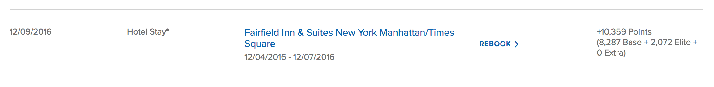 Speaking of which, a final reason why Hotels.com and the Venture Rewards Card could make a good alternative comes when booking at a hotel that does belong to a loyalty program. Generally speaking, hotel rooms booked through Online Travel Agencies (OTAs) will not earn you points nor will they count toward elite status qualification. However, this isn't always the case. Here's a Marriott stay I had in New York back in December 2016 that was booked through Hotels.com (I had Marriott Gold status at the time):