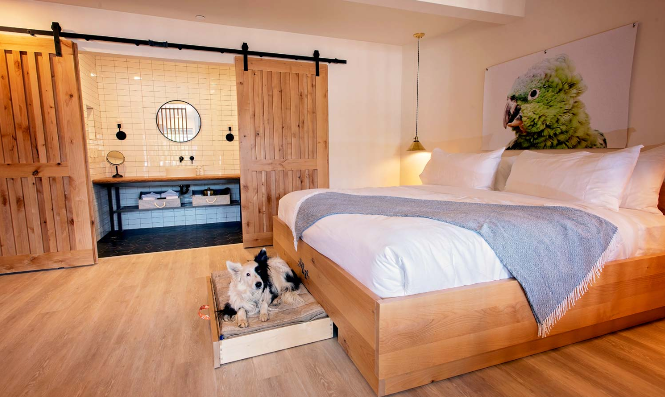 When booking, you can pick from a standard room, king suite or even a two-level suite, which sleeps eight humans. All rooms can accommodate up to four animals. Extra care was put into designing the rooms with pets in mind. For example, the hotel points out that its entry foyers were designed with "ninja door dashers" in mind. The layout helps keep your pets safe and in the room while you come and go.