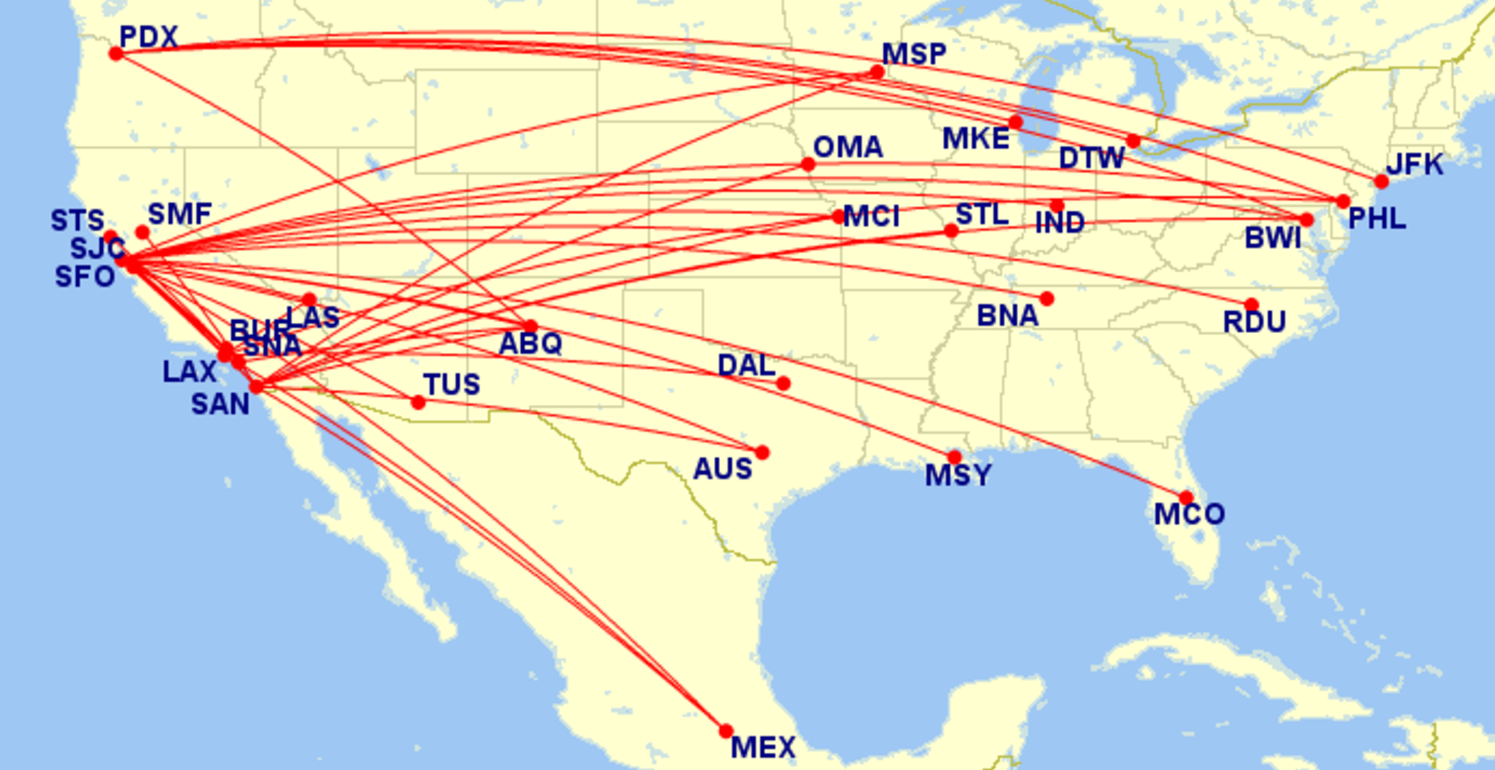 There are around 50 routes that qualify for this promotion: