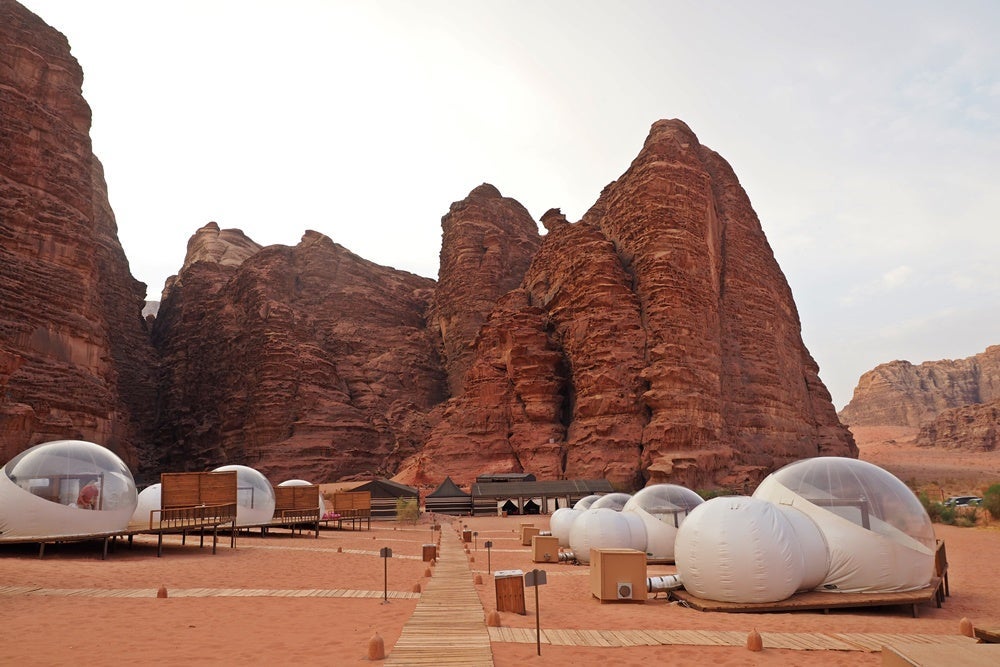 After the day at Petra, I'll venture farther into the desert to reach the Wadi Rum, where I'll stay at one of the many "bubble camps," which feature individual bubbles for guests to stay in and resemble what you'd think a settlement on the planet Mars would look like. In fact, Wadi Rum is so extraterrestrial in its look and feel that it often plays the role of our neighbor in the galaxy in movies and TV shows.