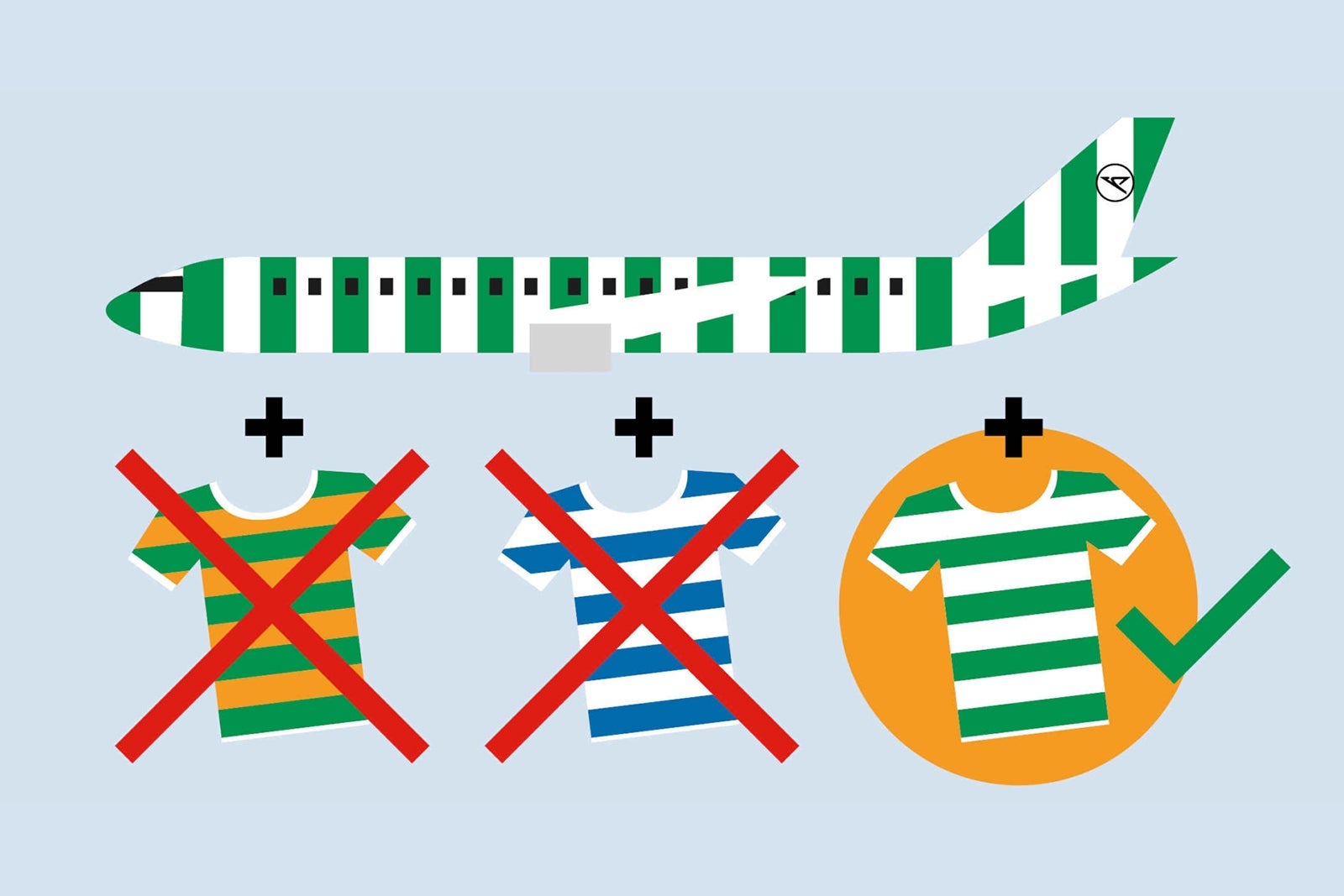 And once you know what color stripes will be on your airplane, you can head to your closet or dresser drawers, the nearest online or brick-and-mortar clothing shop, or even your sewing machine and pick out a striped, color-coordinated shirt or dress to wear on the plane.