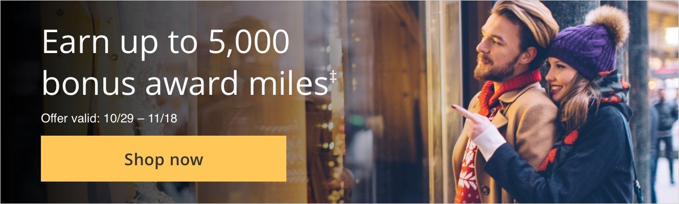 With the United MileagePlus shopping site, you can earn up to 5,000 bonus points. Again, you will earn more bonus points with greater cumulative spending totals.