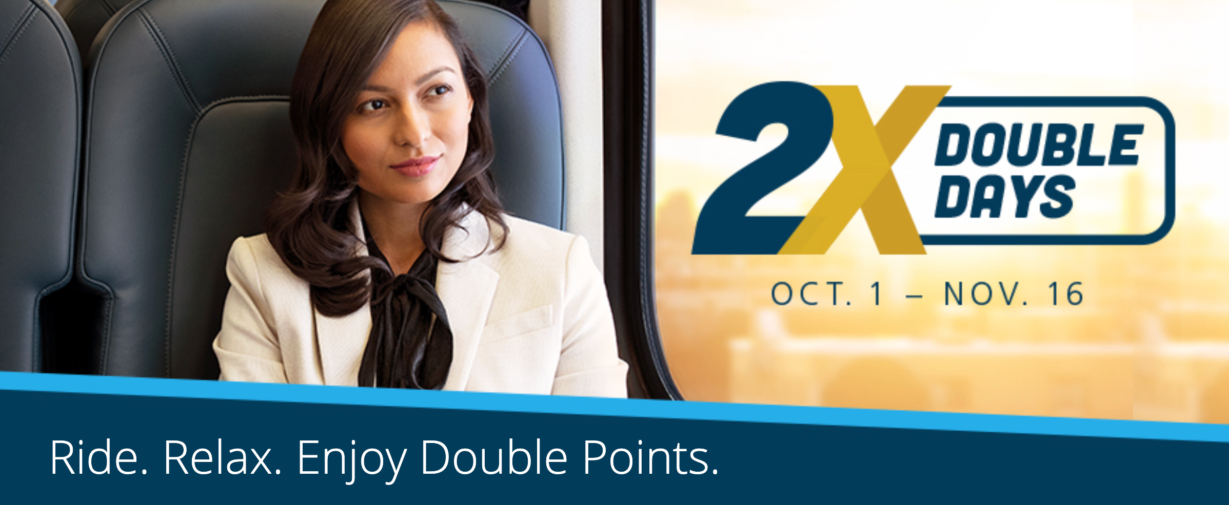 Here’s how the promotion works: Riders will first need to register for Double Days here. Once registered, travelers will have to purchase a train ticket for travel from Oct. 1 through Nov. 16 and complete travel during those dates. There’s no limit to how many bonus points you can earn with the promotion other than being limited to four qualifying one-way segments per day.