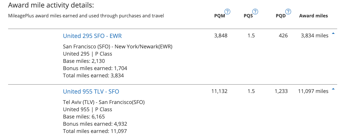 In the end, the circuitous itinerary netted me 14,980 PQMs, over 6,000 more than I would've earned on the nonstop flight from TLV to EWR. My PQD earnings didn't change, but at least I accomplished my mission — earning many more PQMs for free.